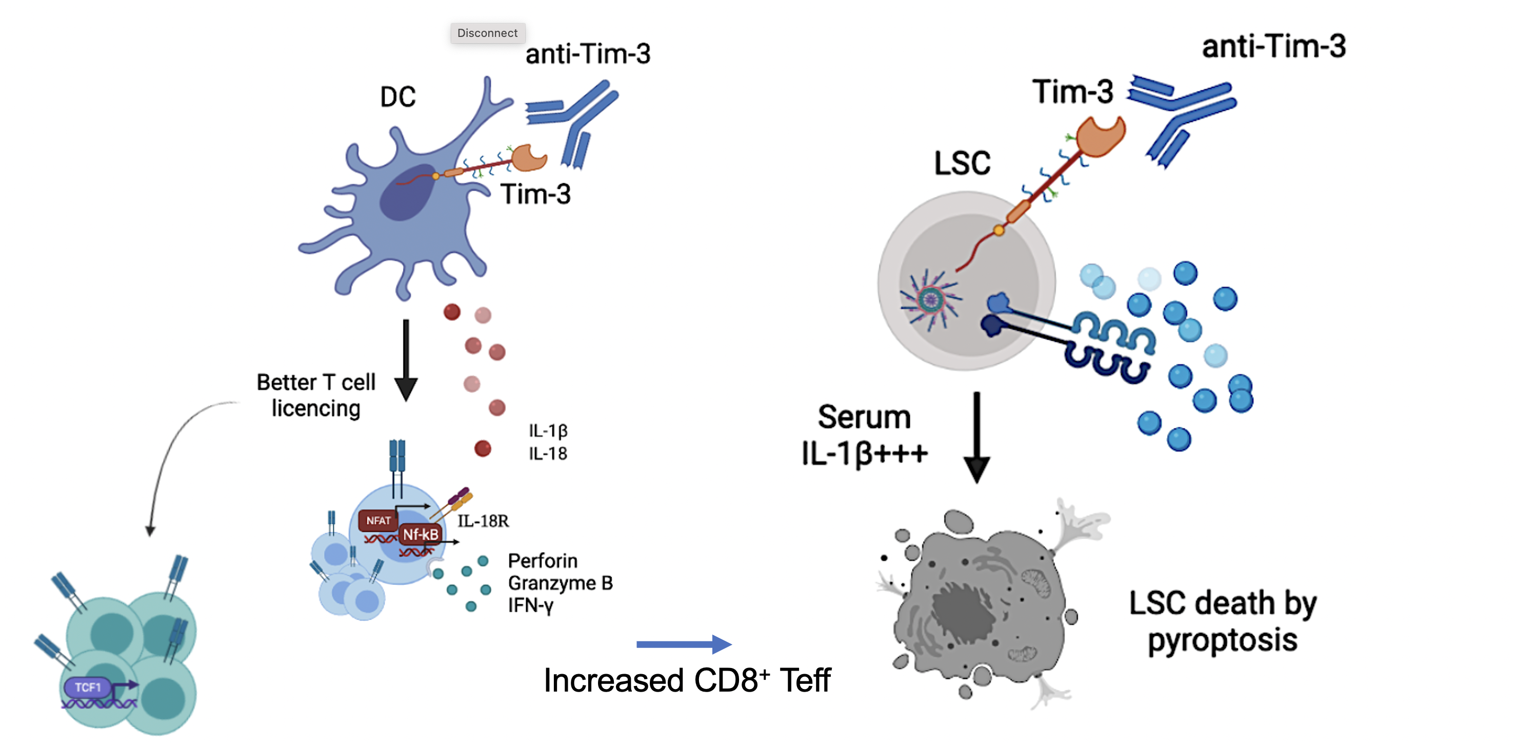 I generated conditional knock-out mice to systematically delete Tim-3 in immune populations and made the surprisingly observation that targeted deletion of Tim-3 in DCs, but not T cells, resulted in a reduction in tumour burden in mice engrafted with colon, lung, or melanoma tumour cells. Tim-3 deletion in DCs resulted in NLRP3 inflammasome activation, and blockade of inflammasome activation either directly or via inhibition of downstream effector cytokines IL-1β and IL-18 reversed the anti-tumour effects of deletion of Tim-3. Our findings revealed the potential of Tim-3 blockade in promoting anti-tumour immunity by regulating inflammasome activation and formed the basis for a patent application.Together this work was disseminated by ACIR (Accelerating Cancer Immunotherapy Research) Spotlight, Research Watch - Cancer Discovery, Görgülü et al, Science Transduction and Targeted Therapy, OpenBox Science, JRNLClub webinar, and a review submitted to Science Immunology (currently under review).