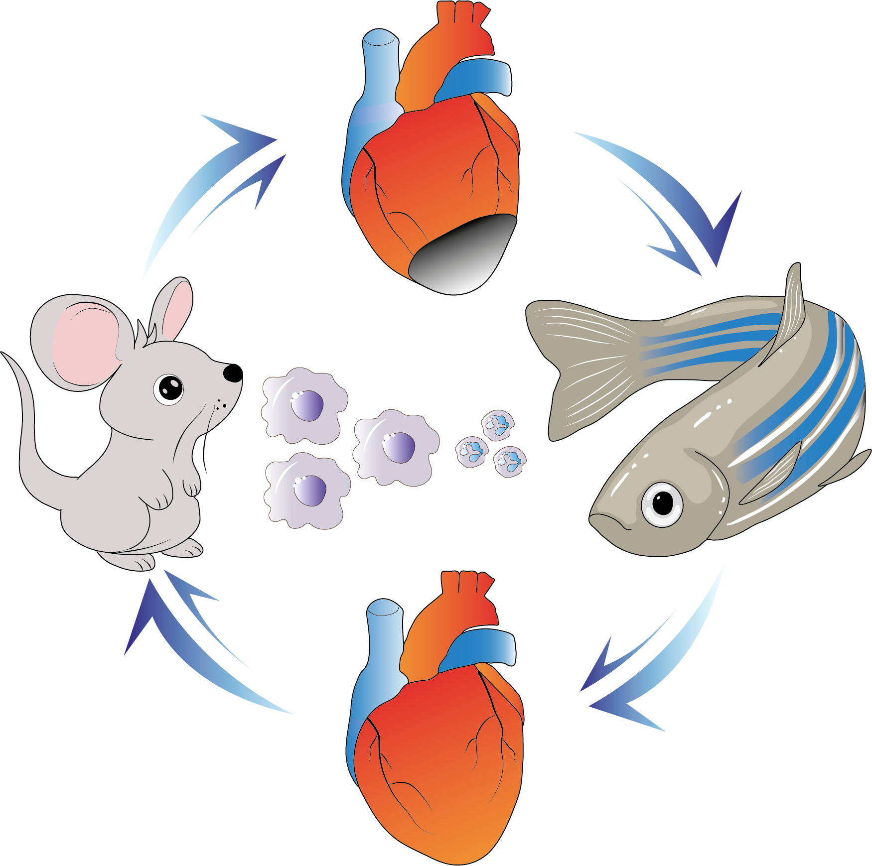 Therefore we established a cross-species platform in which we can investigate the impact of macrophages and neutrophils from non-regenerative mammals on the zebrafish heart regeneration abilities. We isolate macrophages or neutrophils from mouse and polarize them into pro-inflammatory (M1/N1) or pro-regenerative (M2/N2) states in vitro. We then incubate the conditioned media from these cells with ex vivo regenerating zebrafish hearts and analysed the effects of the conditioned media on cell proliferation. When we incubated zebrafish hearts with neutrophils conditioned media, we did not observe any effect on cell proliferation. However, M1 conditioned media decreased cell proliferation, while M2 conditioned media increased it. Through secretome analysis of M1 and M2 conditioned media; we discovered distinct patterns of molecular expression. These patterns suggest their roles in immune function, scarring, gene expression control, and cellular processes related to cell proliferation, structural rearrangements, and morphological adaptations.