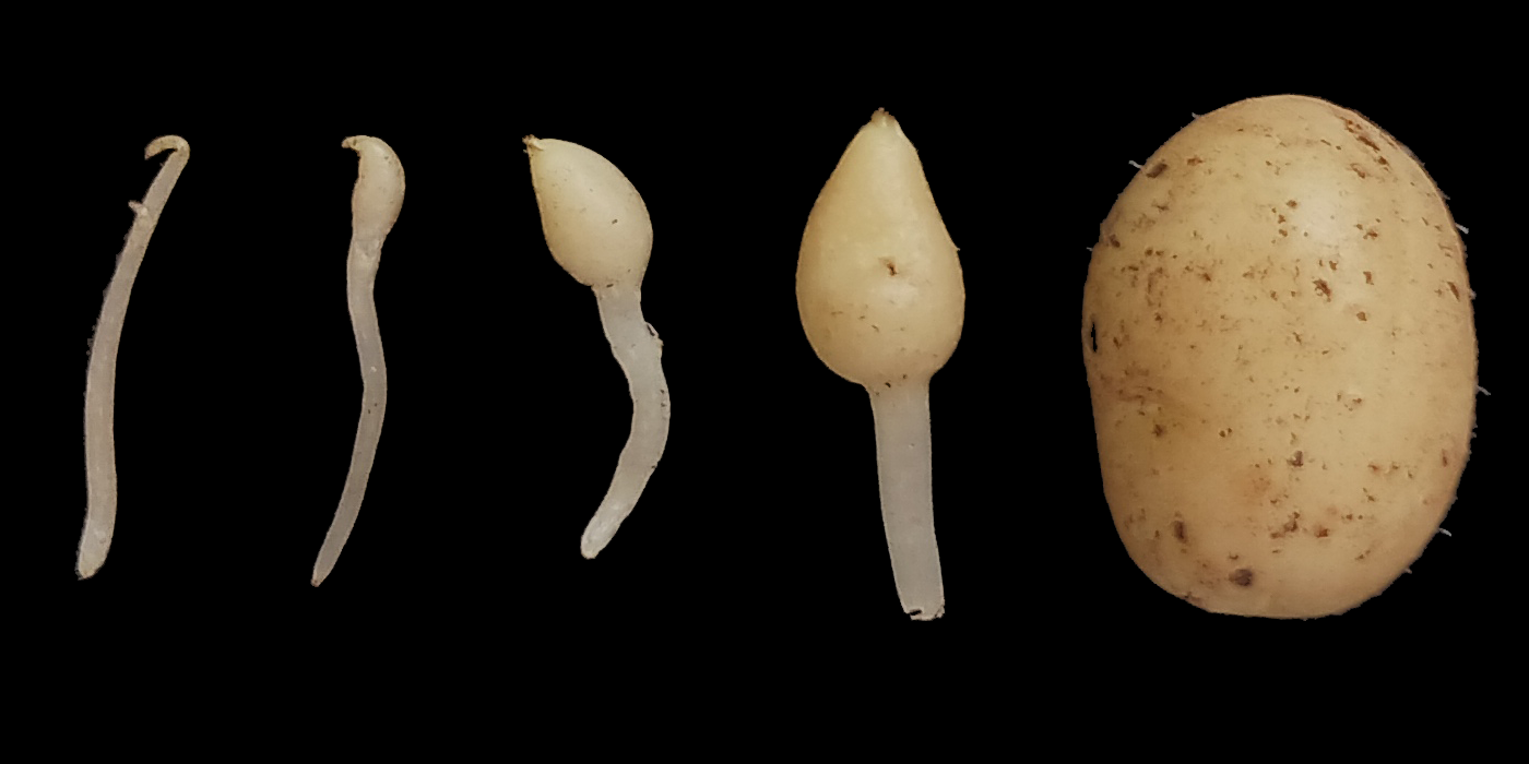 We generated transgenic potato plants with silenced TOR expression. A high-throughput phenotyping was carried out to monitor physiological properties of theses TOR-silencing lines by comparing them to the parental line. We found that lowering the TOR expression primarily affected three parameters: biomass, flowering time and tuber number in soil grown potato plants. Another important experimental system was set up in which we could in-vitro monitor tuber initiation (“microtuber” production) to investigate how the onset of tuberization regulated by the TOR pathway. We found that either applying TOR-kinase specific inhibitors or the silencing of TOR gene expression could enhance the production of microtubers, suggesting that the TOR signaling pathway is a negative regulator of tuber initiation. Additionally, our research revealed that microtubers cultivated under TOR-inhibited conditions were increased in size. Analysis of cell measurements indicated that while these cells were smaller individually, their number was higher, highlighting the role of TOR signaling in tuber size regulation. Finally, we performed transcript profiling on laser-dissected tissues of early tubers to identify the transcription of regulatory genes that are specific to certain cell layers at the onset of tuber formation. With this experiment, we identified regulators that are possibly central to determine the new meristem identity e.g. a Wuschel-related and many of the core cell cycle genes were among the very highly expressed transcript in the cortex layer of the stolon after tuber initiation.