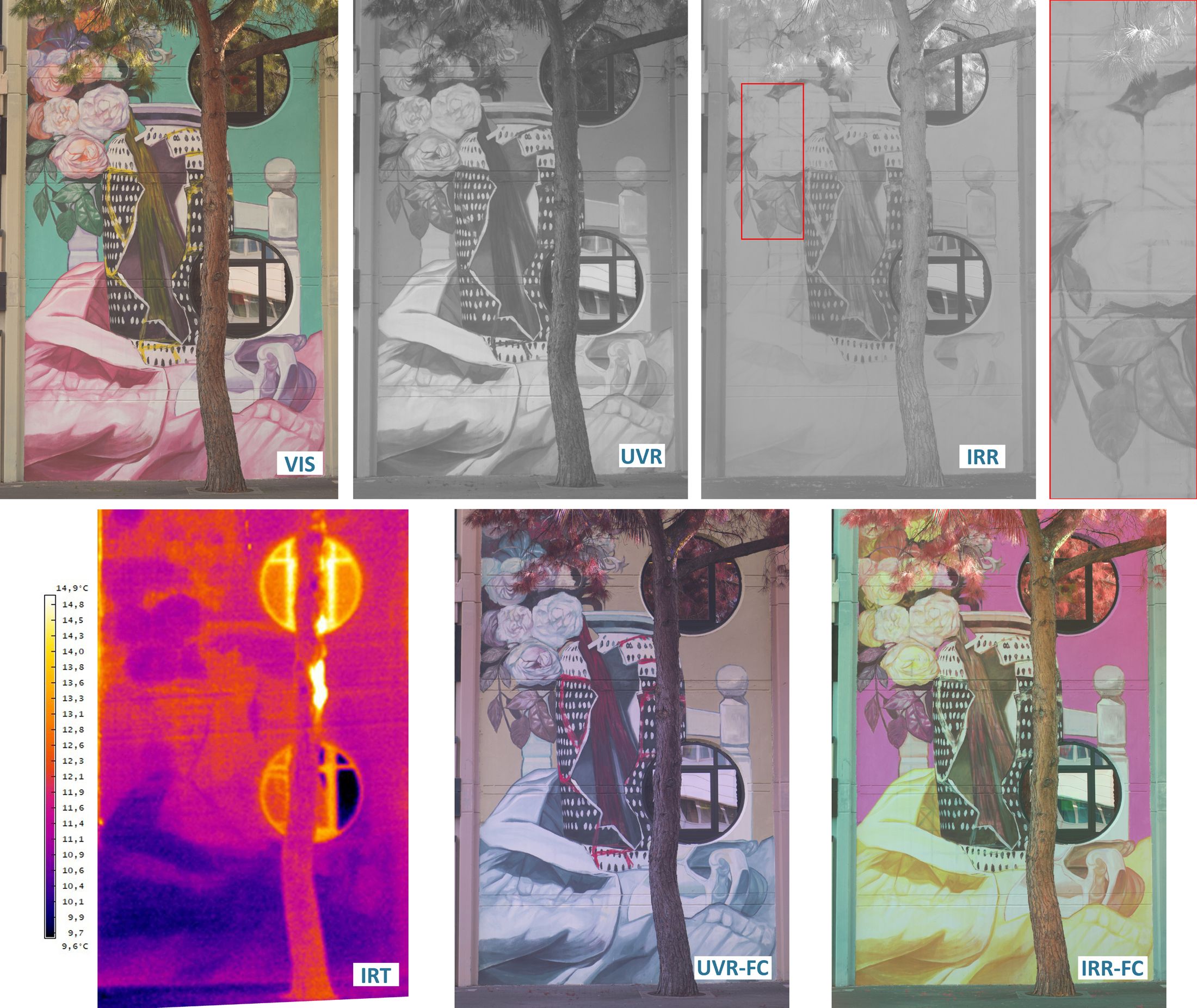 For understanding the objects' history and decision-making in conservation, it is mandatory to investigate as much as possible the stratigraphy of these multi-layered cultural heritage objects. The polymorphic mix of many different materials and layers interact and affect each other intensely. This is where the REVIEW project is addressed, with a special focus on wall paintings. Within the MSCA fellowship, several non-destructive multispectral imaging techniques will be adopted and combined to detect covered wall paintings, hidden structures and unseen damages in Cultural Heritage. Therefore ultraviolet-visible-near-infrared (UV-VIS-NIR) imaging with active and passive thermography in the spectral ranges of long- and mid-wave infrared (LWIR and MWIR), plus 3D laser scanning and photogrammetry will be combined. In addition, statistical methods (e.g. Principal Component Analysis, PCA) for comparing and analysing the multiband data will be tested and implemented.
