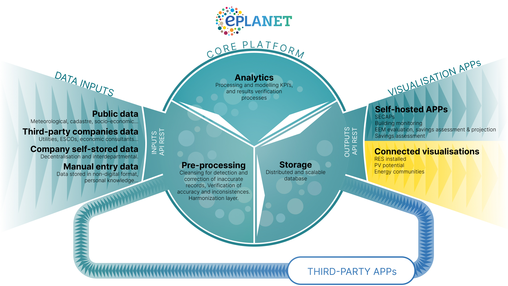 • ePLANET Platform - ET Territorial Observatory: Enhancements to existing energy management software to include features for SECAPs digitalisation and building energy performance analysis. Transferred to Inergy (https://www.inergybcn.com/en/(opens in new window))