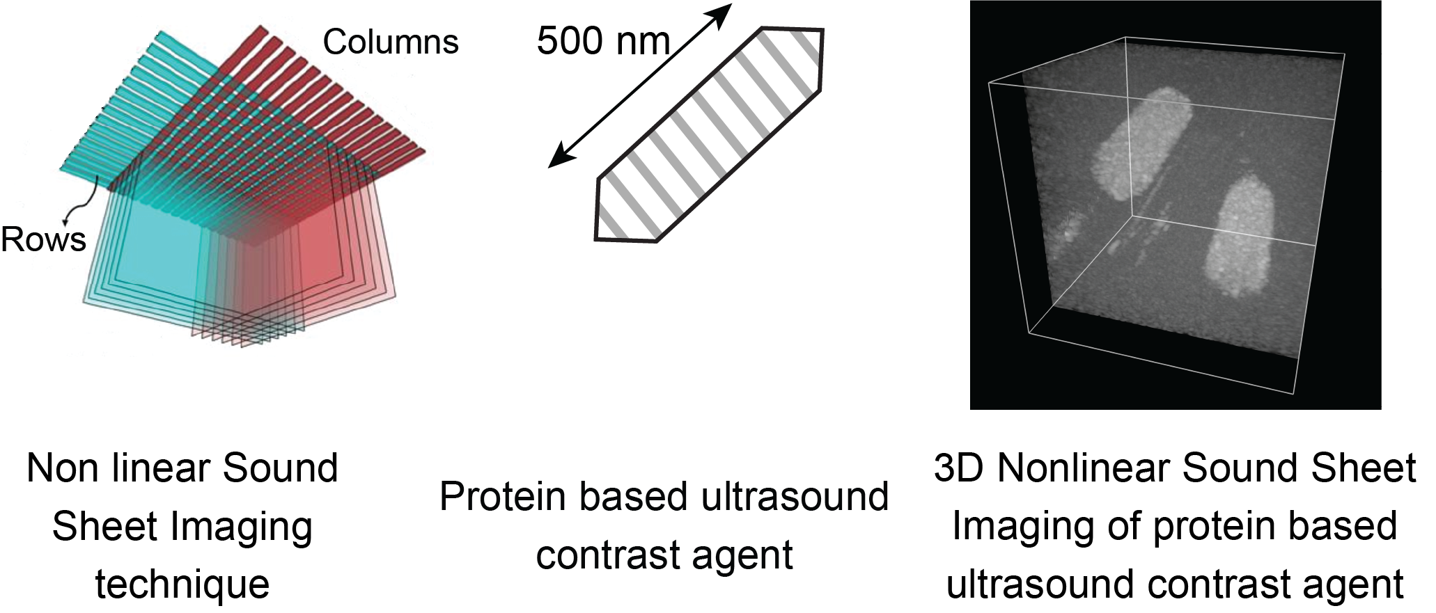 Second, using this technique, we have achieved volumetric ultrasound imaging of a new kind of ultrasound contrast agent for the first time.