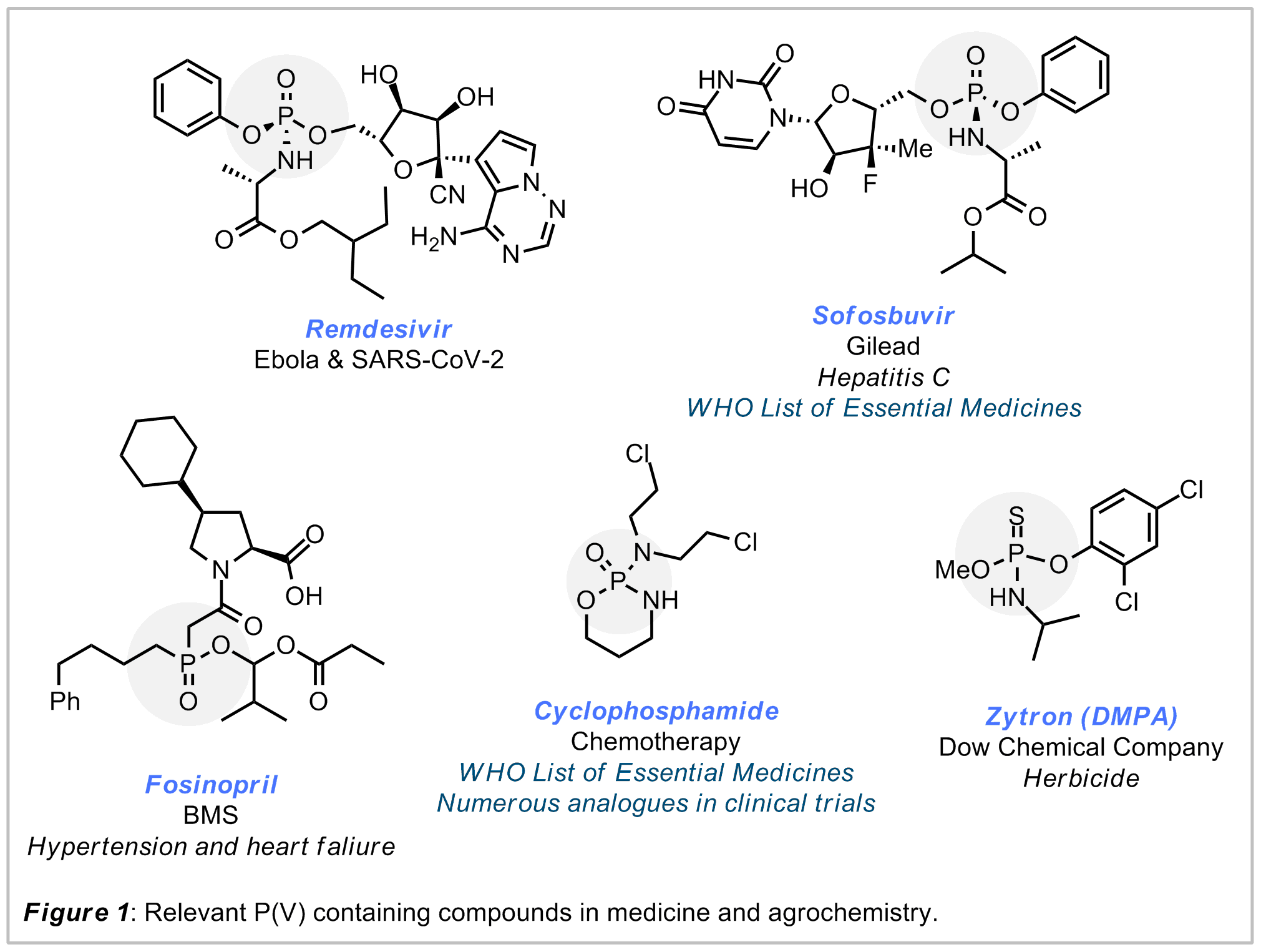 Relevant P(V) containing compounds in medicine and agrochemistry