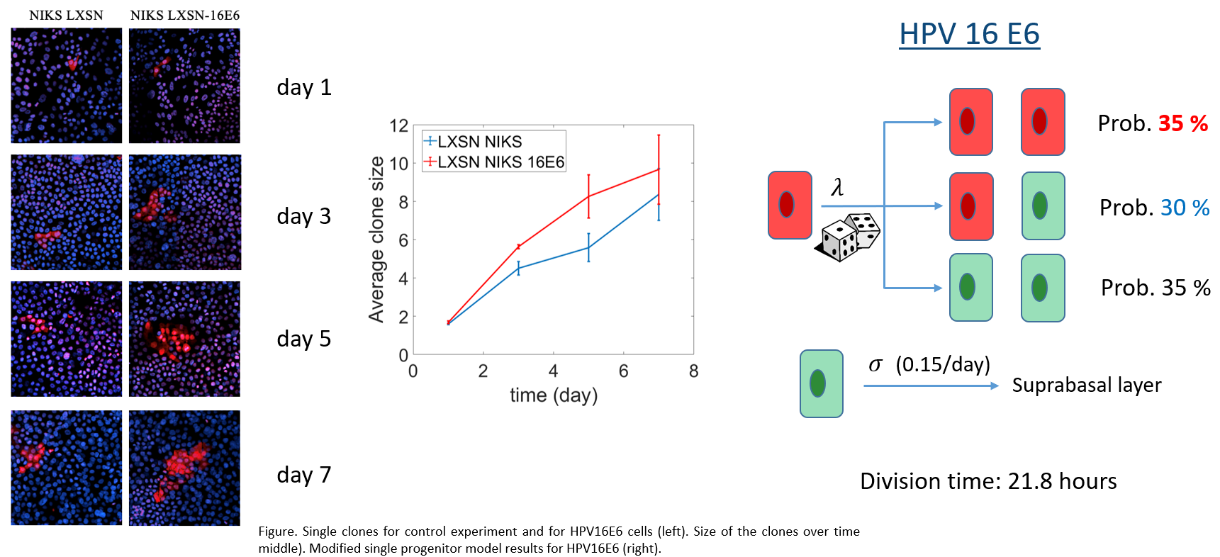 The objectives were to understand the important question about how HPV affects tissue homeostasis through E6 both phenomenologically through the development of a cell state model describing cell states (proliferative, differentiation) in the infected epithelium. The objectives were also related to study how E6 could affect Notch pathway in order to mechanistically understand, through a pathway understanding, how cell fate choices in terms of cell proliferation and differentiation are controlled as well as explore antiviral therapies hypothesis through model simulations.