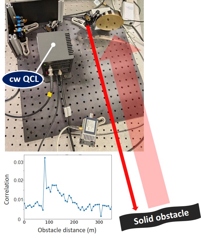 2) developemt and test (indoor and outdoor) of a LIDAR operating in the mid infrared, based on cw QCLs and on the Pseudo-Random Modulation technique, suitable for both range finding of remote obstacles and air-quality analysis through path-integrated chemical analysis.