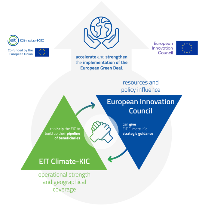 • Scale: build the camp, and leverage European ecosystems, by providing access to high quality partnerships and networks, access to risk finance, share practice with other innovation agencies and overcome regulatory barriers The overall proposal’s goal was the first step towards leveraging the ecosystems and assets of EIC and EIT Climate-KIC. This pilot developed and tested coordination mechanisms between both organisations and their innovation communities, looking specifically at synergies and complementarity towards the European Green Deal goals.