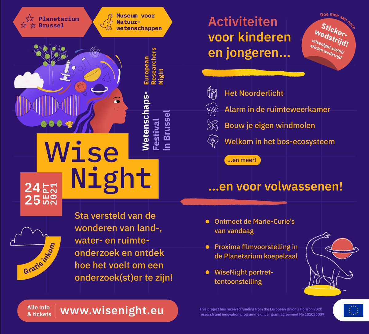 WiseNight is a fun and inclusive event bringing science and scientists in contact with the public interactively. It shows that science is about passion, teamwork and for anyone with an insatiable curiosity to discover and change the world. WiseNight is part of the European Researchers’ Night, taking place everywhere in Europe simultaneously. The event took place on Friday 24 and Saturday 25 September 2021 and invited everyone to marvel at the universe, explore the depths of water and oceans research, unearth the wonders of our lands and forests, and discover what being a scientist is all about. All activities were organised at two inspiring locations in Brussels, capital of the EU, the Museum and the Planetarium, which enabled for the discovery of historic and natural landmarks where research has been conducted for almost two centuries. Despite covid-19 restrictions still in place at the time of the event, participation was high and the feedback overwhelmingly positive.