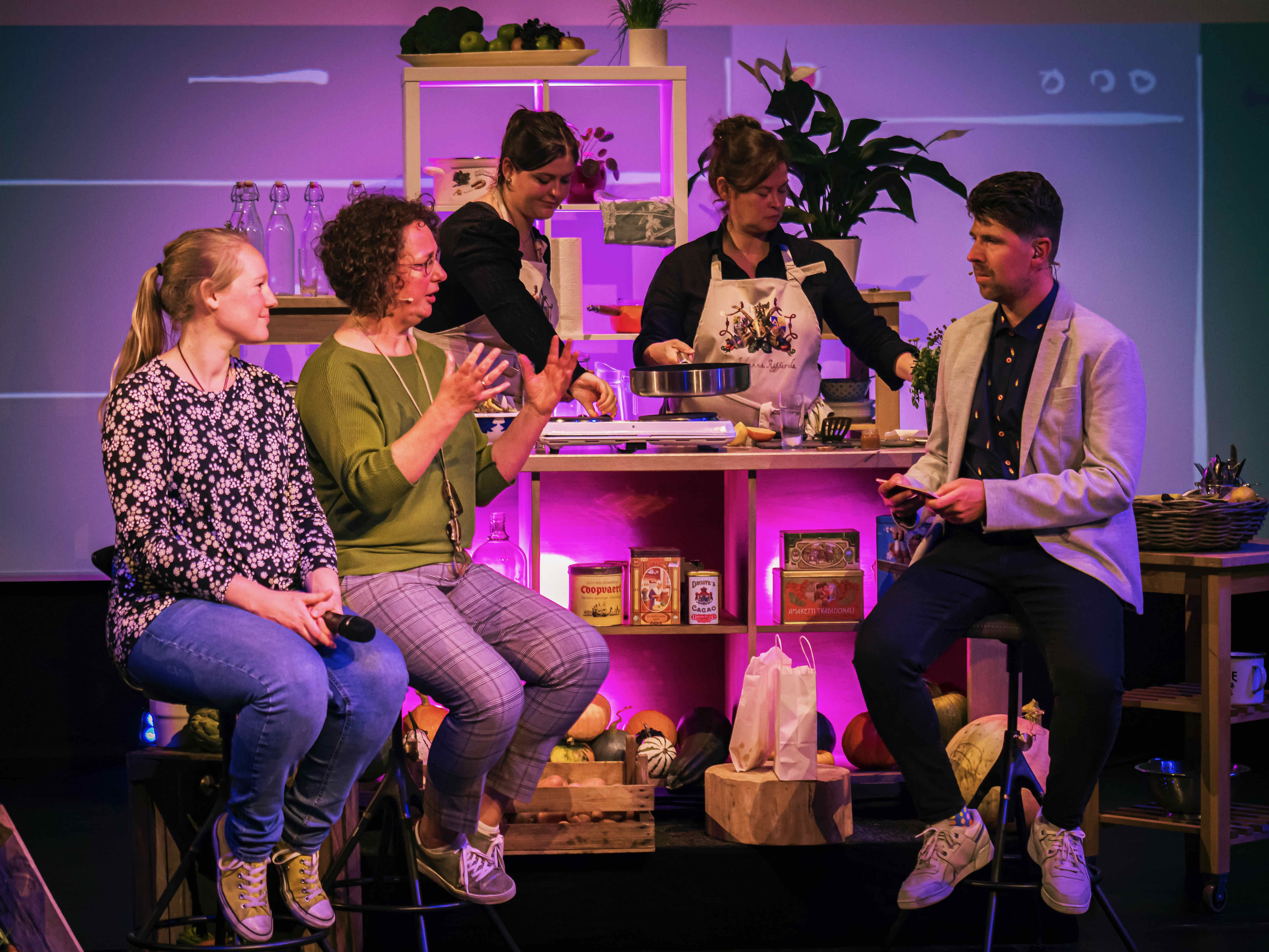 Two shows: 'Aletta’s Kitchen - The Greatest Groninger Food Quiz' and 'Aletta’s Kitchen - The Greatest Groninger Food Quiz junior edition' – Both shows involved a fun quiz, built together with researchers, food professionals, nutritionists, target group, and artists which allowed participating teams and the audience to discover striking scientific findings about healthy food and the role of science in our daily lives.