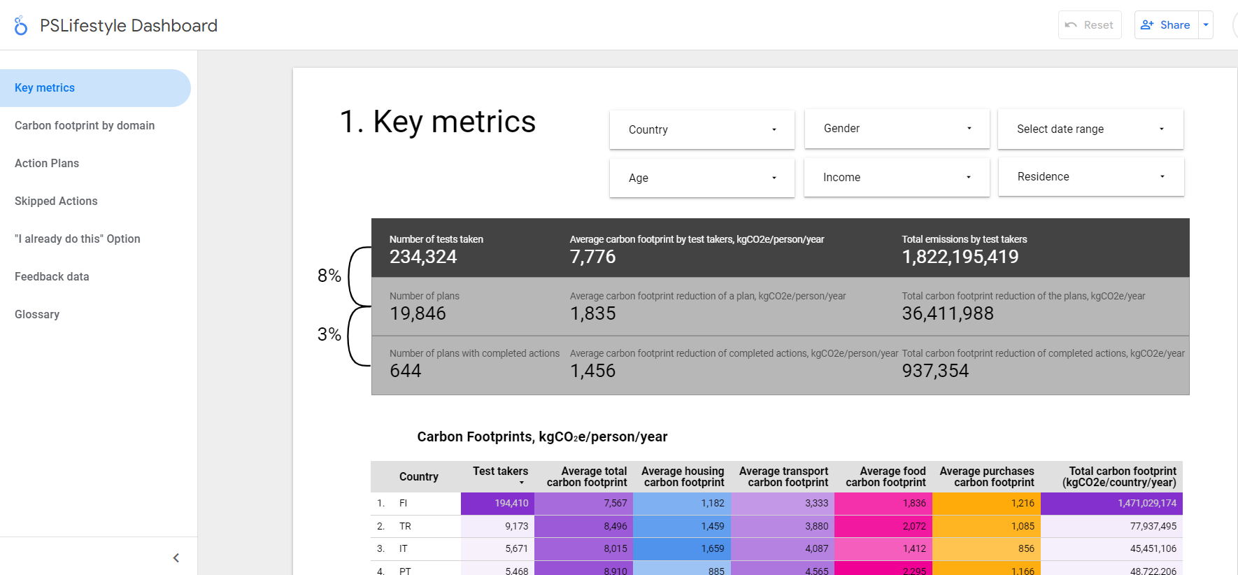 (1.1) Develop a digital on-line application, that includes a consumption-based carbon footprint calculator, a wide range of suggestions for sustainable lifestyle, and a sustainable lifestyle planning and commitment tool. The application is based on a successful existing carbon footprint calculator.