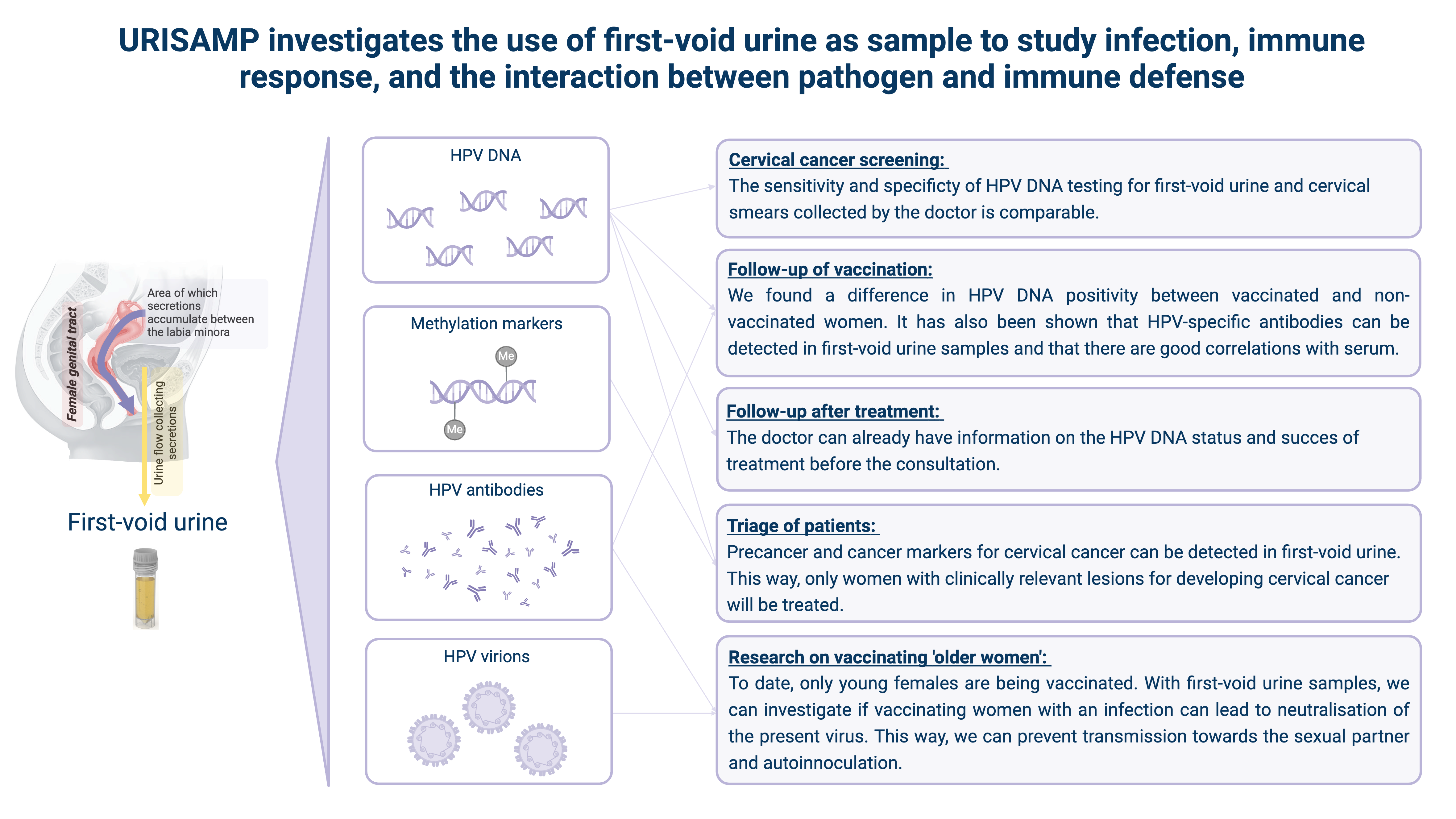 The URISAMP project pioneers several novel methodologies that are expected to make a significant impact in the field of vaccinology and monitoring of genital tract infections. Up to now, our work and publications have had profound impact on HPV vaccine monitoring and related research, establishing us as a leading expert centre worldwide in the use of first-void urine for HPV-related research.