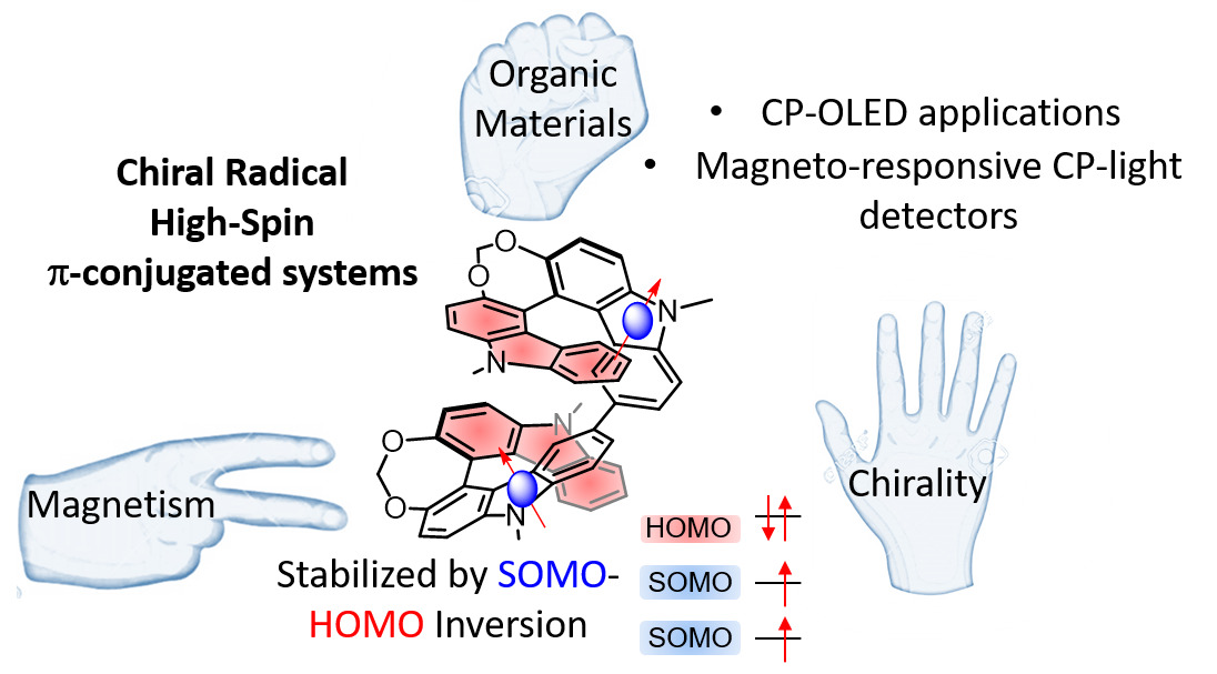 AR's objective is to design new chiral materials by harnessing the synergy between chiroptical and magnetic properties. Stabilizing enantiopure chiral mono- and diradicals holds significant potential for advancing high-spin organic materials, with prospective applications in chiral sensing and chiroptical devices.