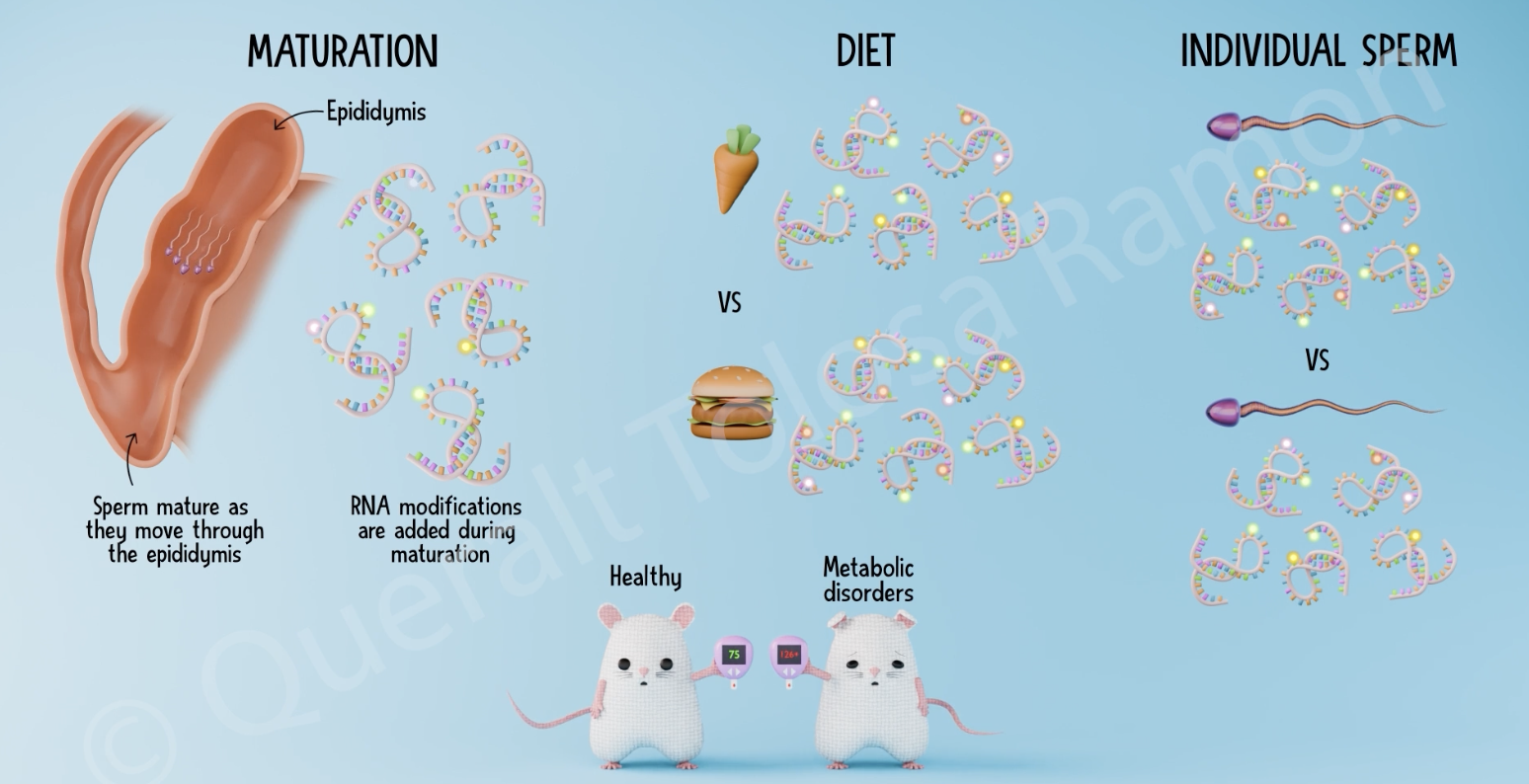 With EPISPERM, we propose to obtain a comprehensive and integrative multi-omics view (transcriptomics, epitranscriptomics, fragmentomics and tailomics) of the dynamics of sperm RNA across maturation stages (Aim 1), upon different diets (Aim 2) and across individual cells (Aim 3). These aims will include experiments to functionally test whether identified RNA modifications and RNA biotypes play a role in sperm maturation and in intergenerational inheritance.