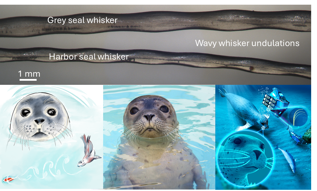 WP1: WP1 focuses on the biological inspiration, the seal whiskers. We have conducted thorough morphological, mechanical and material characterization of seal whiskers of harbor seals (phoca vitulina) and grey seals (Halichoerus grypus). We have also conducted fluid–structure interaction studies and experimental investigations involving a whisker array mounted on 3D-printed microelectromechanical systems sensors, the vibration characteristics of the whisker array and the interaction between neighbouring whiskers in steady flows and fish-wake-like vortices were explained for the first time.