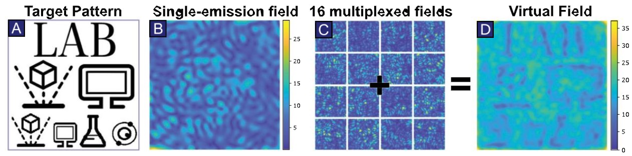 On the long-term development, we have shown how time-multiplexation of acoustic fields can lead to higher quality of acoustic patterns (Elizondo, 2023). In a master thesis (Aldea, 2023), we explored the combination of phased-arrays with static modulators to enhanced the resolution of the amplitude patterns that will be used to shape the light scatterers. We are focused on understanding how the acoustic fields can shape aerosols, fog or mist (small particles in general); we have detected a mechanism to do this based on the temperature of the air. Different scatterers are being studied in combinations with strobe, light-field and high-speed projection.