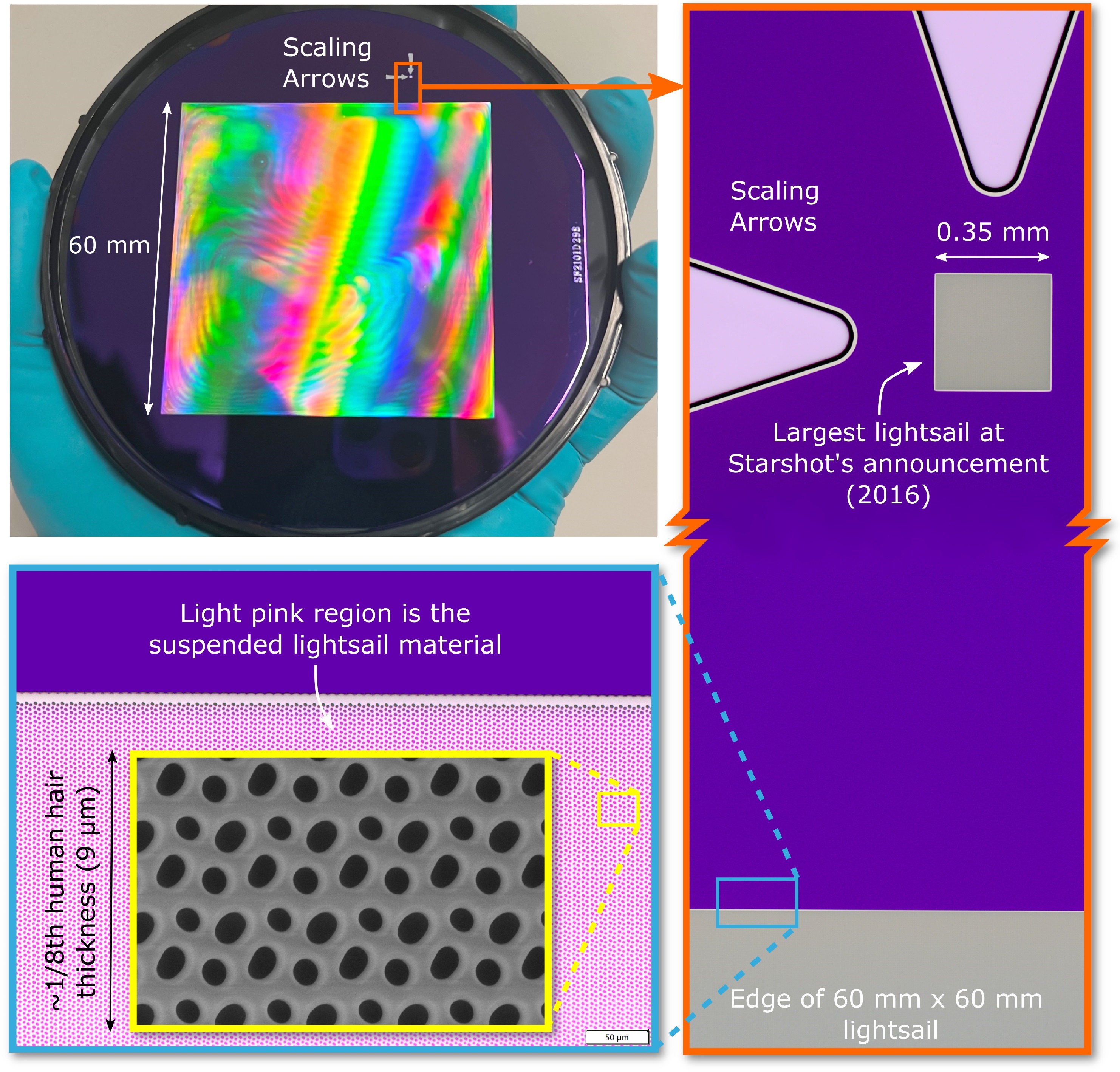 Wafer-Scale Lightsail: The first wafer-scale, single-layer PhC lightsail meeting Starshot’s requirements.