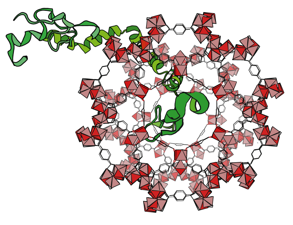 • Generation of Ultraporous MOFs: We have discovered a methodology that utilizes our own MOF families based on heterometallic Ti2Ca2 clusters as templates. The reaction of these microporous frameworks with metal solutions results in a change in the cluster’s nuclearity, inducing the formation of mesoporous crystals with cavities close to 4 nm and yields approaching 100%. The availability of this synthetic tool will enable the synthesis of multiple porous crystals compatible with the encapsulation of enzymes with varying sizes.