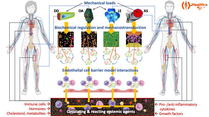 The project models atherosclerosis, intervertebral disc degeneration, knee osteoarthritis, and lung emphysema. Each NCD model cellular/molecular components will feed into an endothelial cell dysfunction interface, which communicates with a body-wide systemic communication model.