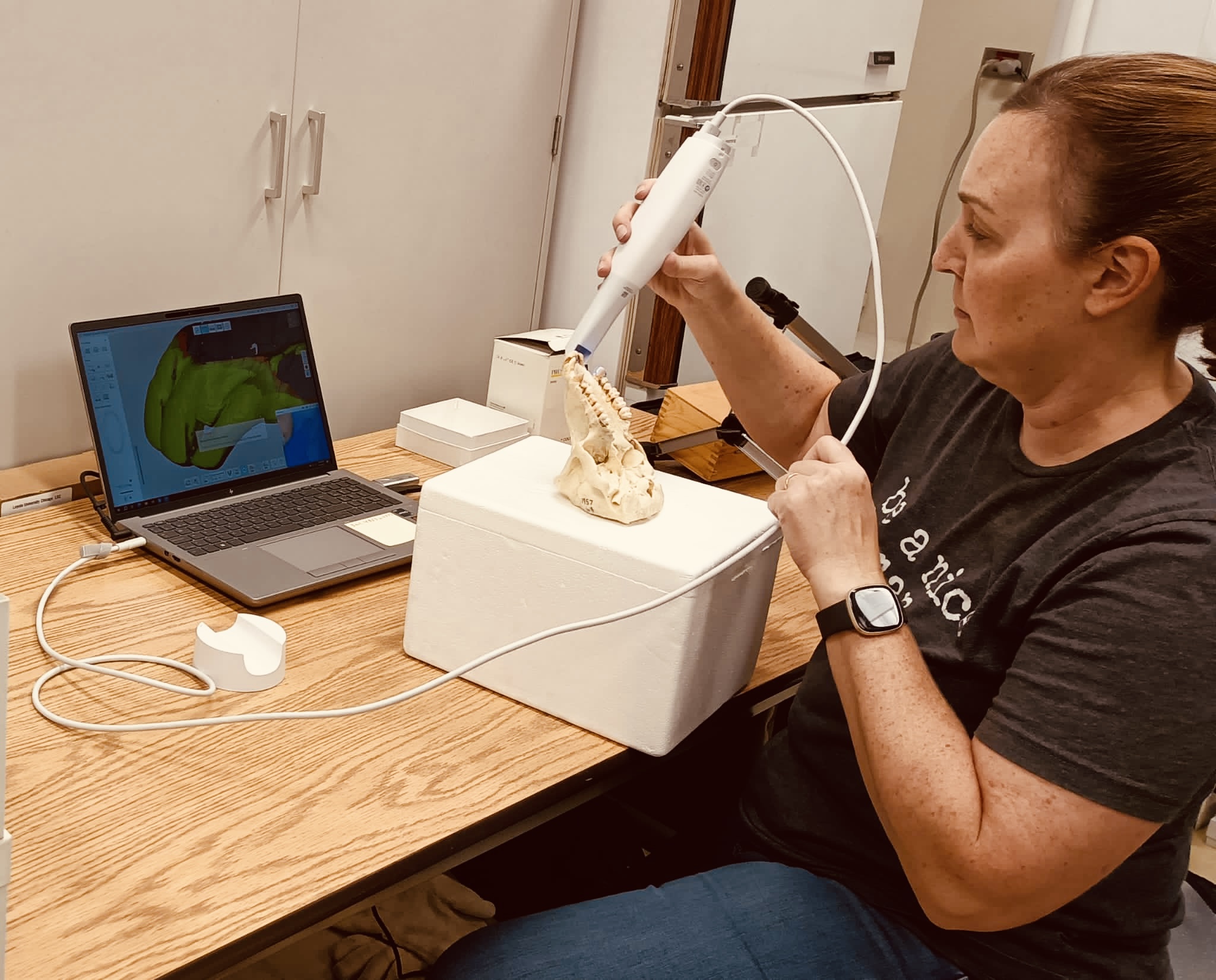 This project consists of three major aims, or approaches. In the first, we use quantitative genetic analyses to identify shared genetic effects between the skull and dentition. Our study population is comprised of 985 deceased and skeletonized baboons from the Southwest National Primate Research Center in Texas. These animals are all part of one large extended family for which all relationships are know. This pedigree information enables us to investigate how variation is inherited through the population. We utilize CT scans of the skulls that were made after death alongside high-resolution surface scans of the dentitions that we collected using a laser scanner. In the first two years of the project, we made the dental 3-d scans and semi-automated the data collection from the crania CT and the oral scans. We have begun to collect data from both types of scans. These genetic analyses will help us understand how the cranium and face evolve relative to the dentition, and whether or not the evolution of these different anatomical regions is intertwined. As humans have a unique combination of small faces, very large brains, and reduced dentitions, we anticipate that our forthcoming analyses will elucidate human evolutionary history.