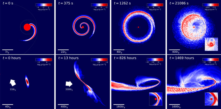 Another major achievement was the first-ever long-term simulation of a realistic tidal disruption event. This simulation confirmed that a drastic change of paradigm is needed in the current TDE models. We have also identified a new type of TDE, which we coined “extreme TDEs”. These extreme TDEs occur when a star passes extremely close to a black hole horizon. We have demonstrated that the observational signatures of these TDEs differ drastically from those of regular common TDEs.