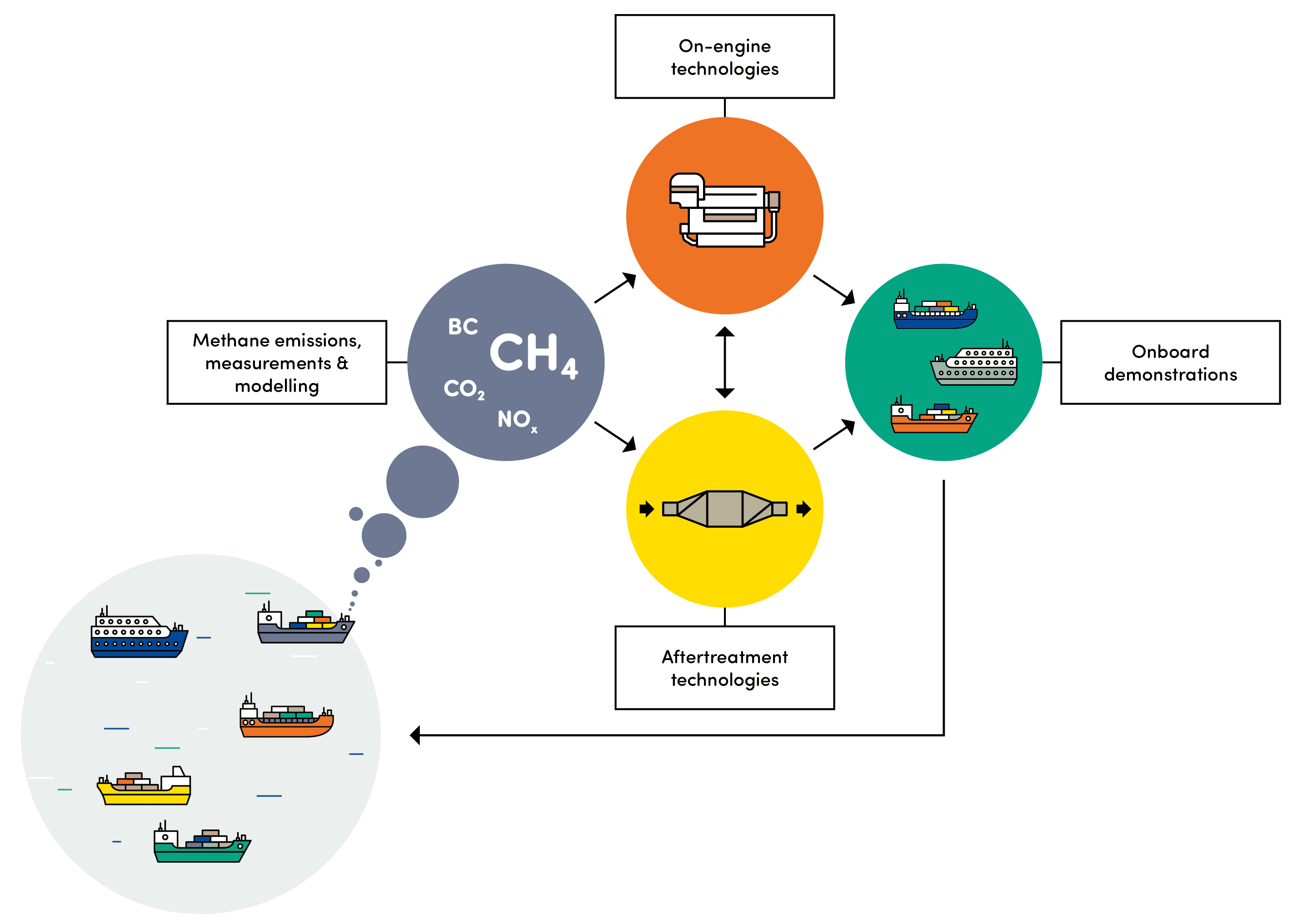 There are two main objectives for the project. First, to assess the methane emissions from shipping. To achieve this, the GREEN RAY project will combine existing data collection with onboard measurements to address existing vessels and new builds, normal operation and varying loads, and further utilize these results in a model development to achieve LNG fleet level assessment. Moreover, these results are utilized in preventing the methane slip formation, which is the second main objective of the project.