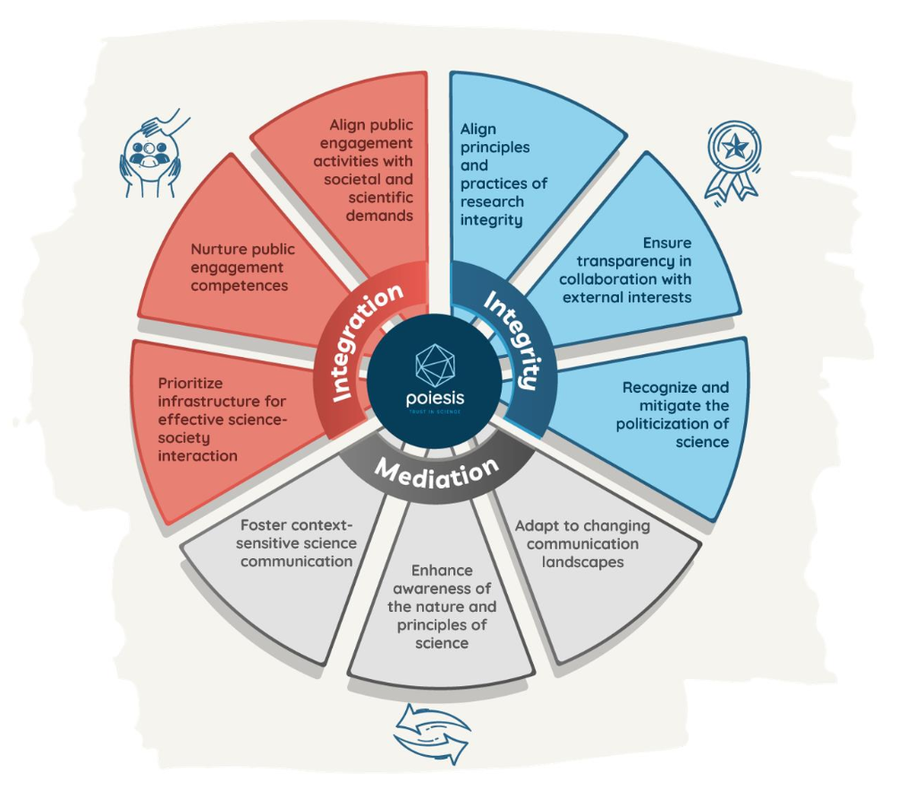 • Together with its sister projects, VERITY and IANUS, POIESIS has worked to amplify the collective voice of the research community on issues of trust in science, ensuring broad dissemination of the resulting discussions and recommendations.