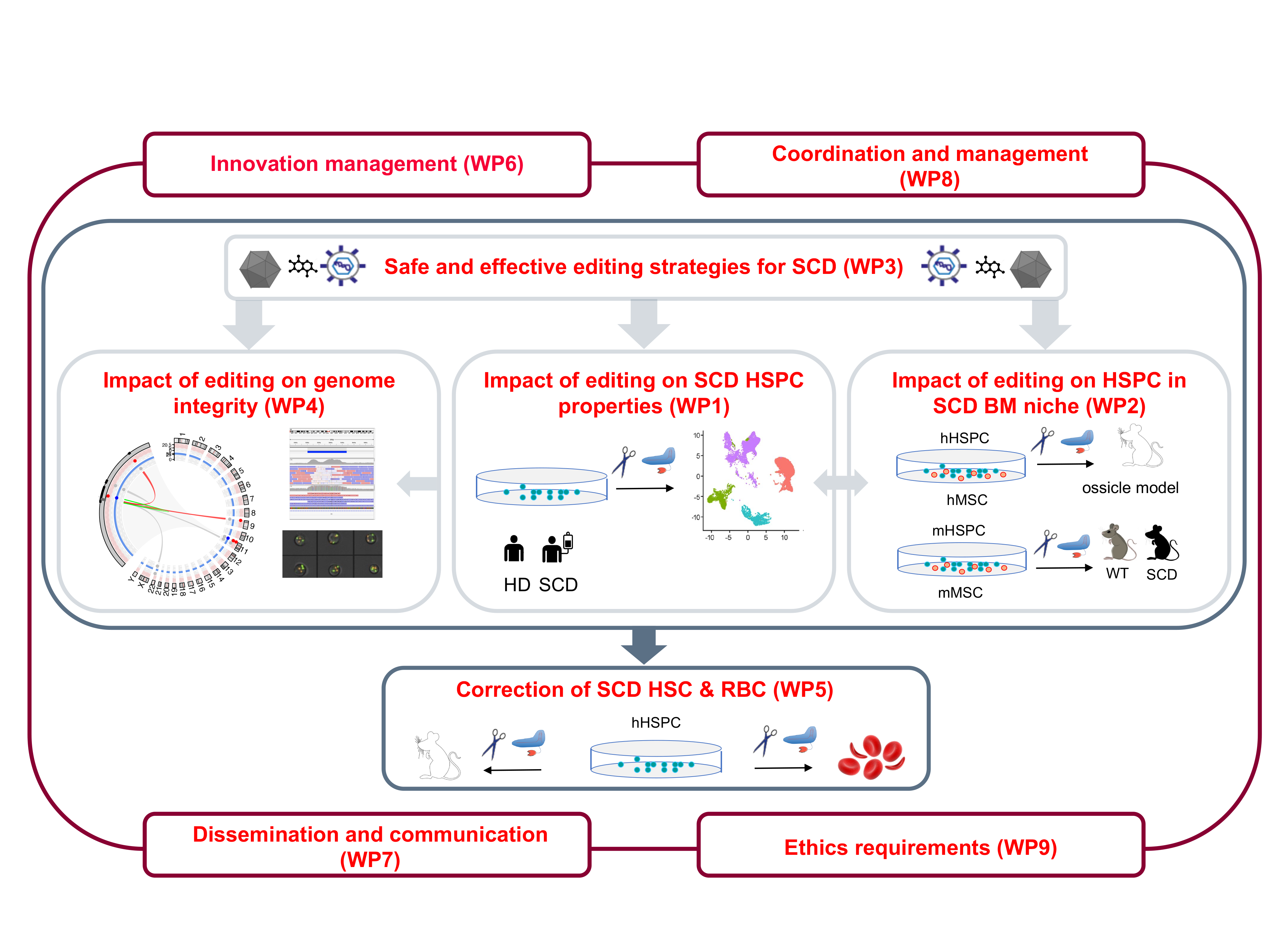 In particular, we will compare established and novel therapeutic approaches for SCD based on genome editing. In particular, we will test three therapeutic strategies: