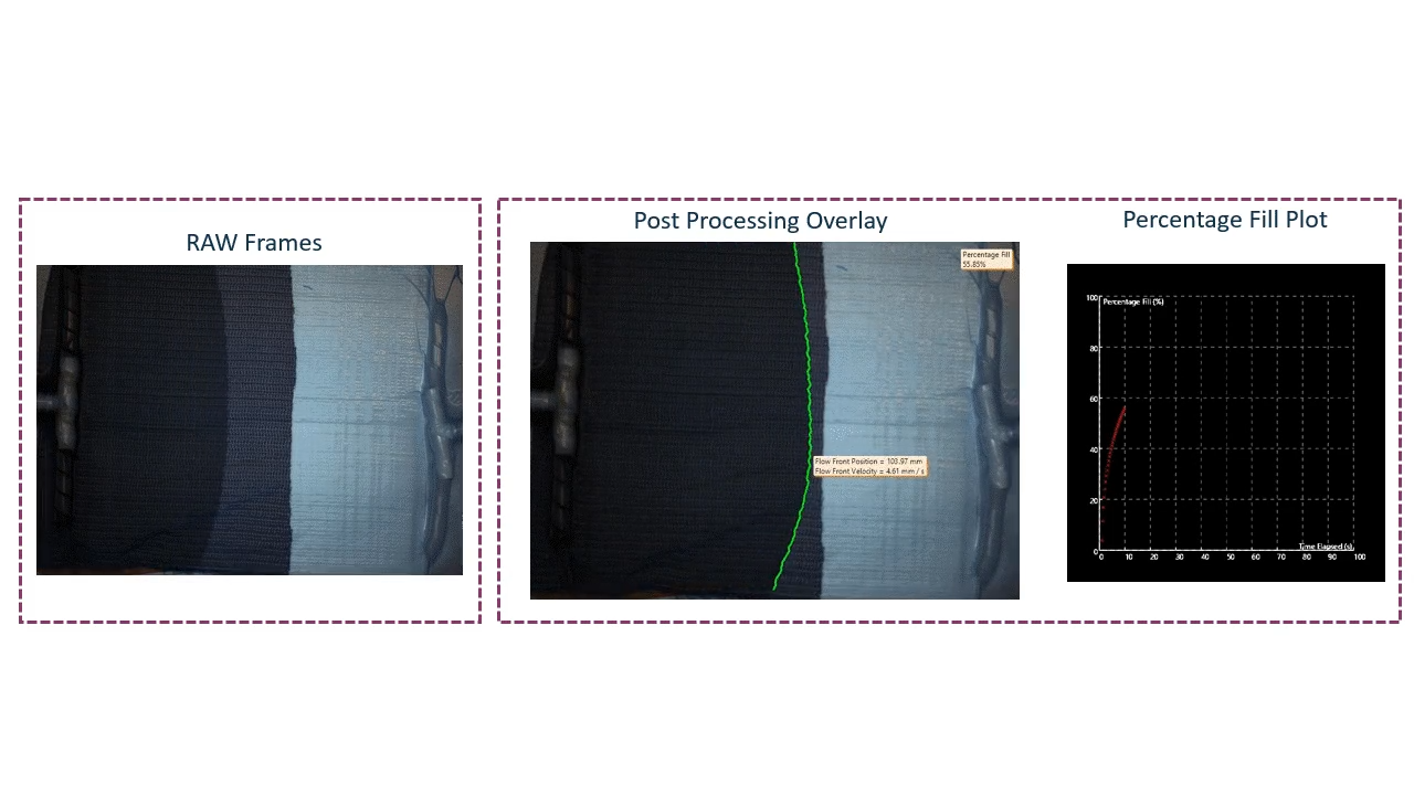 Core placement detection, inlet flow (bubbles detection, resin velocity) and front flow (position) monitoring algorithms were developed. Methodology to evaluate resin mixing and degree of curing with HSI was developed.