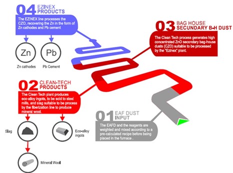 • the EZINEX process which extracts zinc from furnace dust for metallurgical applications,