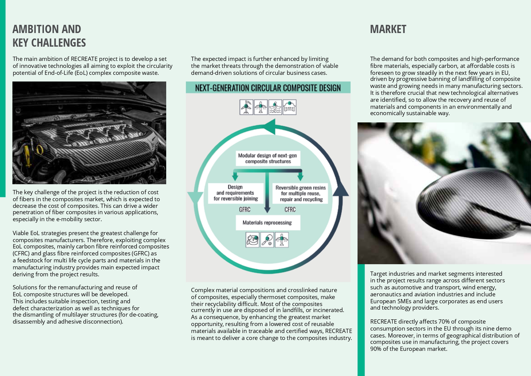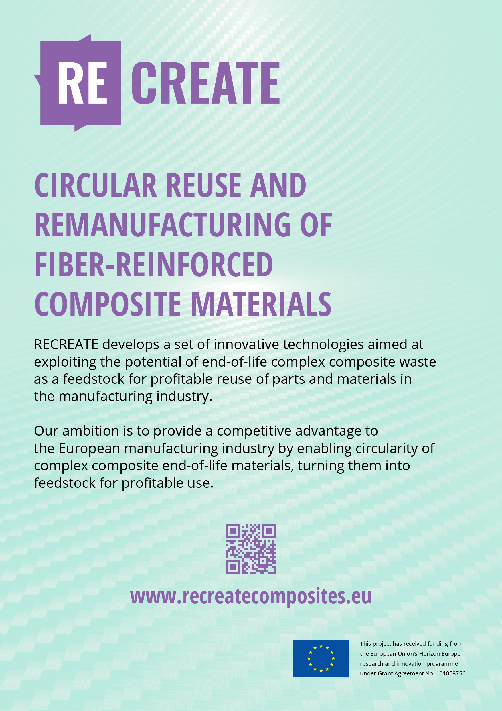 Periodic Reporting for period 1 - RECREATE (REcycling technologies for Circular REuse and remanufacturing of fiber-reinforced composite mATErials)