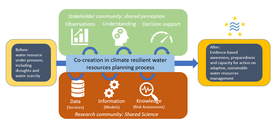 STARS4Water aims to improve the understanding of climate change impacts on water resources availability and the vulnerabilities for ecosystems, society and the economy. To achieve this, STARS4Water delivers new data services and data driven models, which are co‐designed with stakeholders based on their needs, ensuring their relevance and uptake.