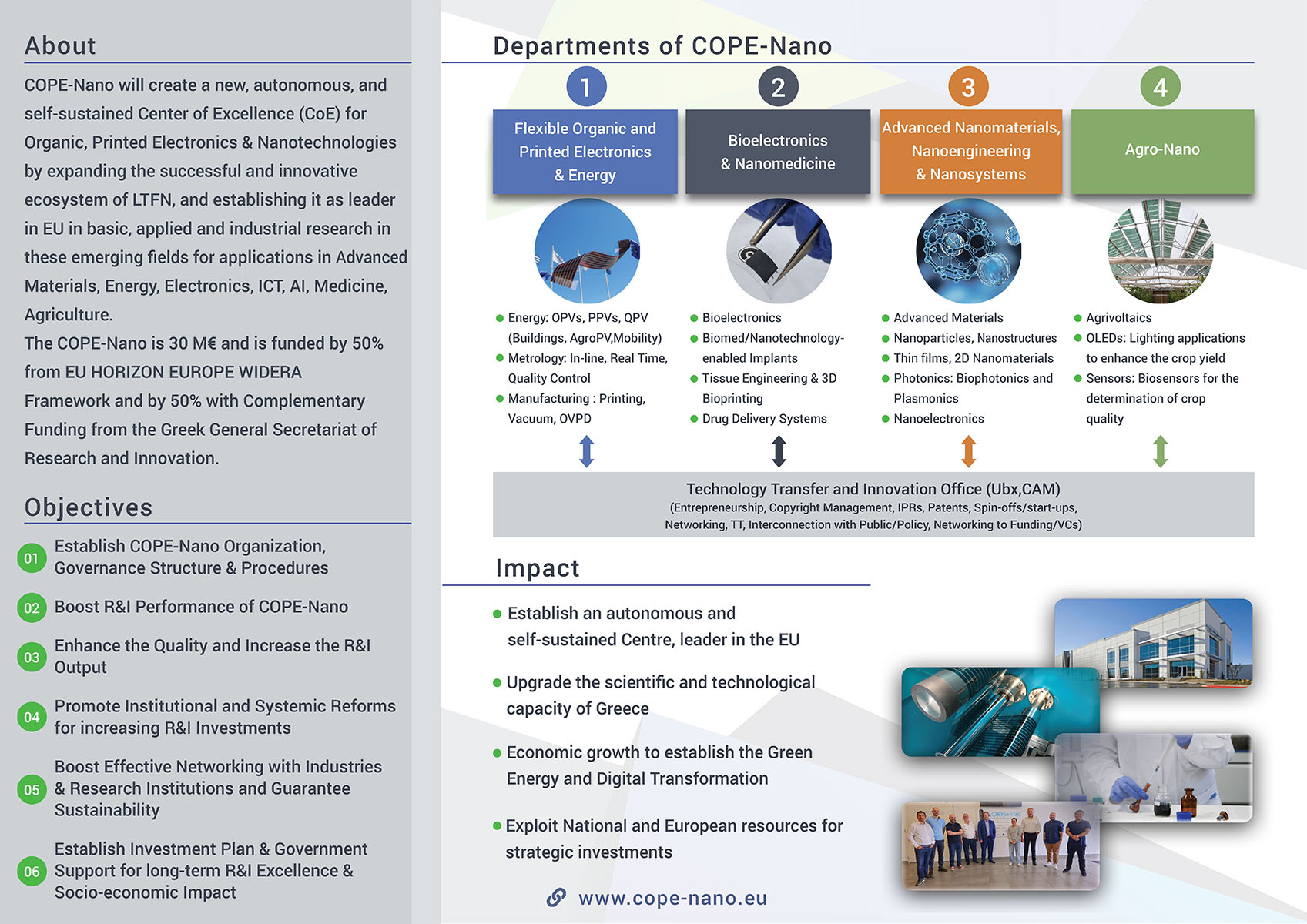 - Detailed definition of the thematic areas, structure and procedures for the COPE-Nano Departments