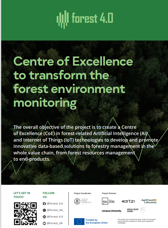 The Forest 4.0 consortium is coordinated by Vytautas Magnus University (Lithuania), the Forest 4.0 consortium involves 5 partners from two European countries (Lithuania and Sweden), including universities - Linnaeus University, Kaunas University of Technologies and Vytautas Magnus University, industry partners - Interior Cluster Sweden, ART21, UAB and AgriFood Lithuania DIH.