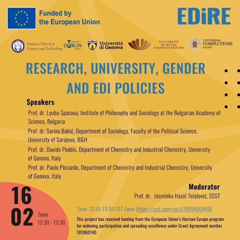Periodic Reporting for period 1 - EDIRE (EQUALITY DIVERSITY AND INCLUSION FOR RESEARCH ENHANCEMENT IN BOSNIA HERZEGOVINA)