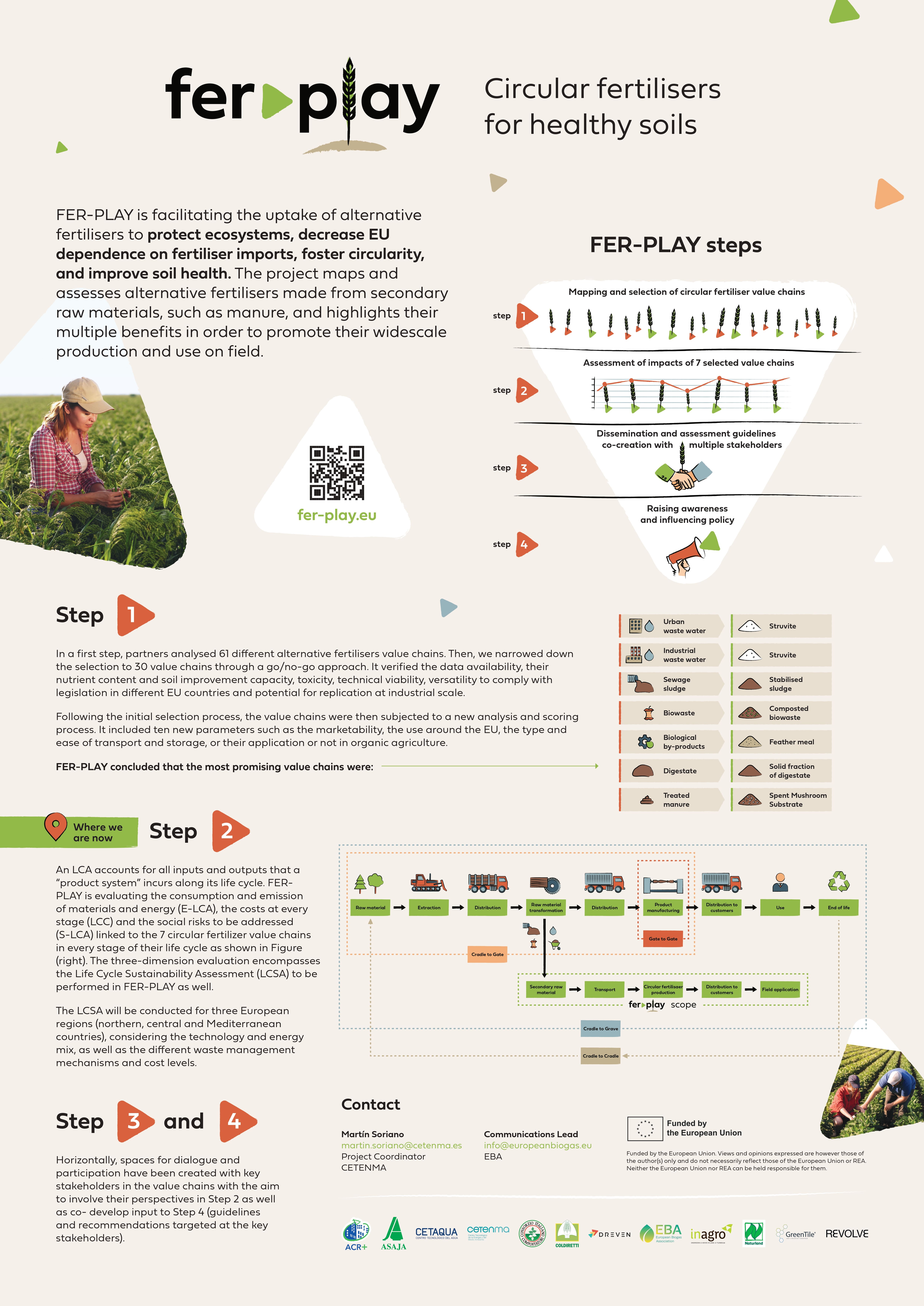 In this context, FER-PLAY contributed to increase resilience and self-sufficiency, minimise pollution and enhance soil health through 1) mapping and selecting the most promising CF following a multi-assessment approach, 2) assessing them through Life Cycle Sustainability Assessment (LCSA), and 3) gathering information through co-creation and increased awareness among various stakeholder groups.