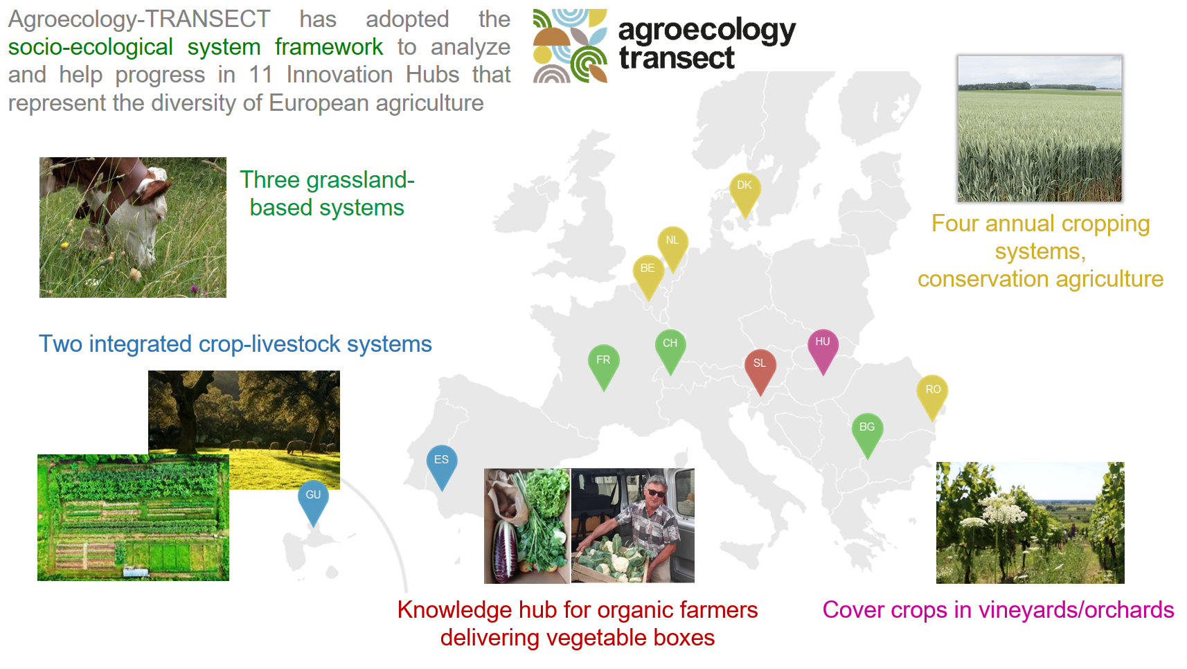 A meta-analysis of 123 independent studies is revealing a general positive effect of agroecological interventions on biodiversity. This positive effect is observed for arable cropping, perennial and grassland systems, with also a positive trend for horticulture. Statistically significant effects of agroecological interventions are observed for all functional groups except for micro-decomposers. A total of 63 social movements in Europe provide a clear definition of agroecology. While the principles proposed by the High Level Panel of Experts of the UN is a common reference for scientists, 78% of European social movements rather refer to the Nyéléni declaration or other grassroot agroecology definitions. In our network of 11 IHs, we are successfully sharing and valorizing past, ongoing and future experiences of agroecology in order to increase awareness and knowledge exchanges between local stakeholders. To systematically record this knowledge, we are proposing methodologies (causal analysis, network analysis), defining indicators for success, and formulating action plans through reflexive learning cycles. Finally, on the policy dimension, we have built a database of 235 publications for analysing current CAP performance on biodiversity and support the development of recommendations for CAP post-2027, Green Deal and Biodiversity strategy. We have also analysed the claims and counterclaims around the Nature Restoration Law (NRL), demonstrating based on scientific evidence that its benefits, especially with regards to agricultural lands, outweigh the costs. We argue that NRL could contribute to strengthening the links between nature conservation and agricultural land users, and make European agroecosystems more resilient to climate change.