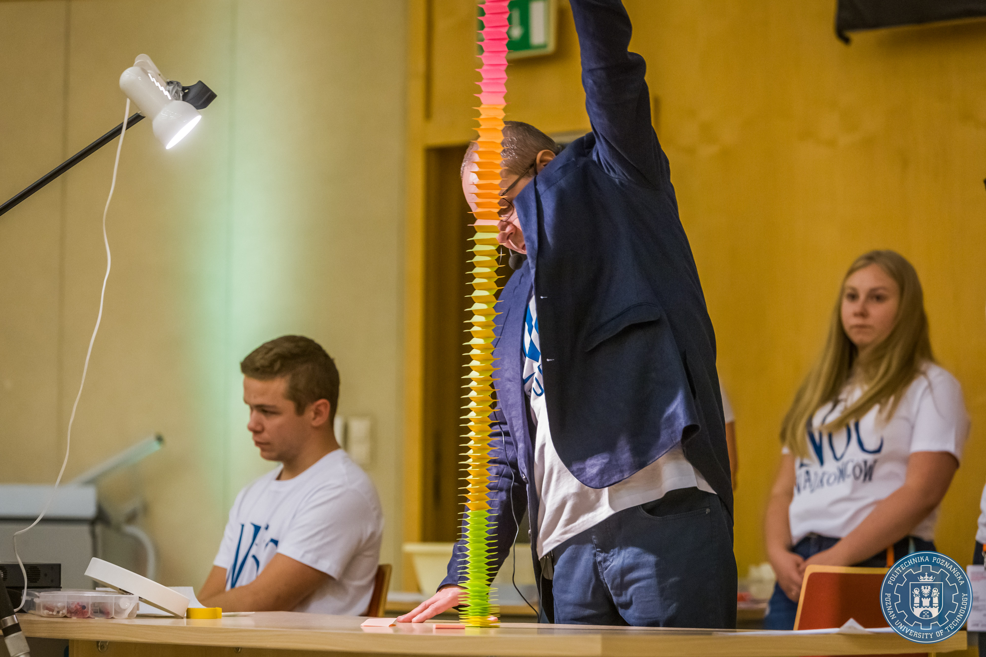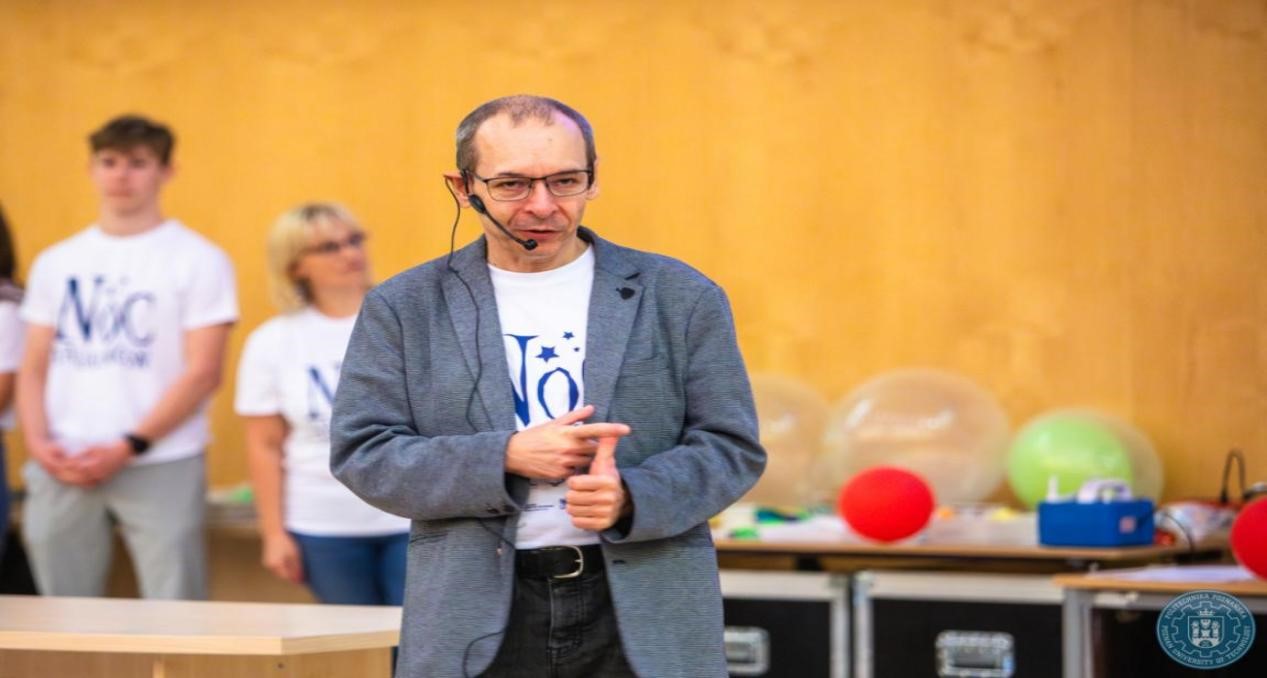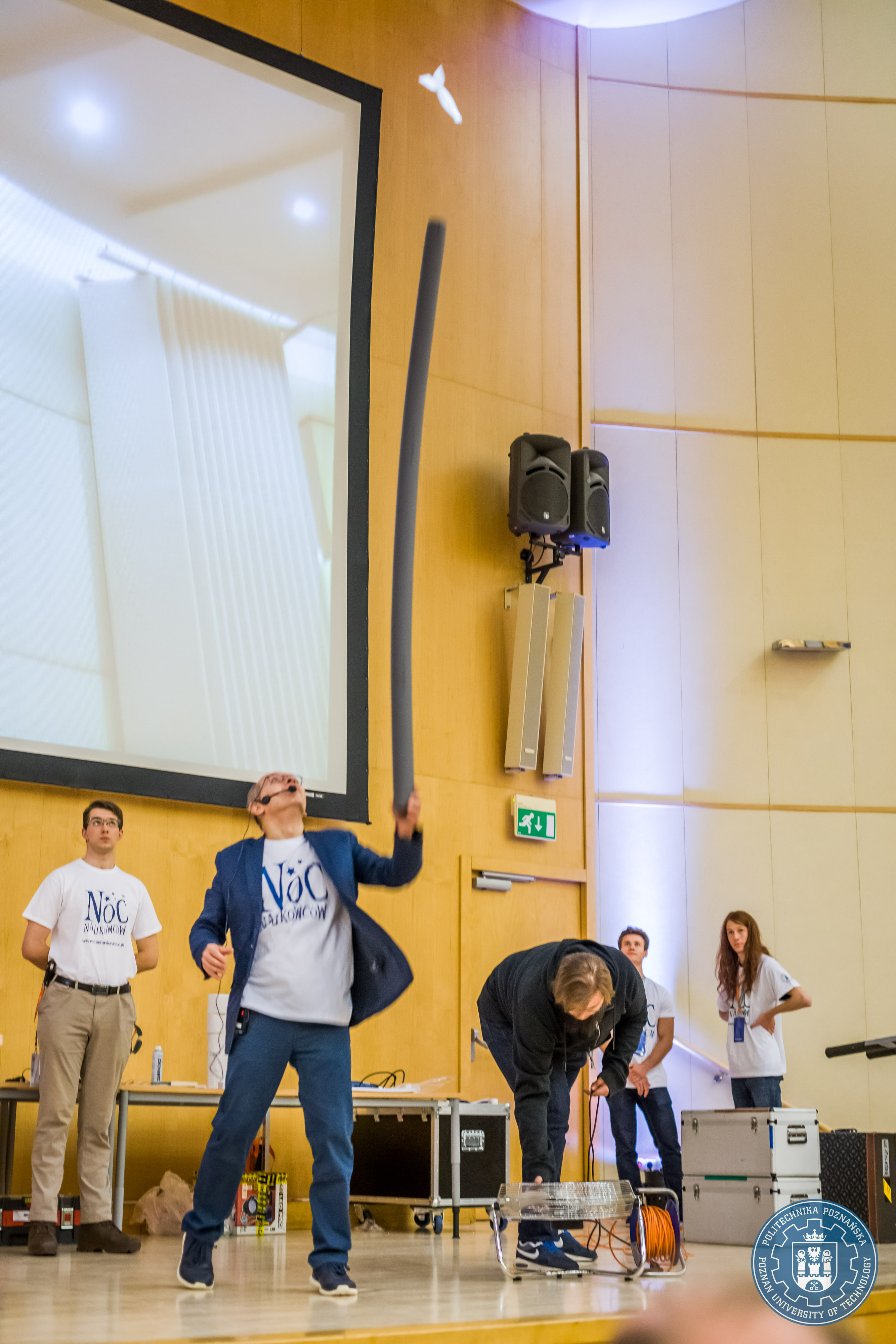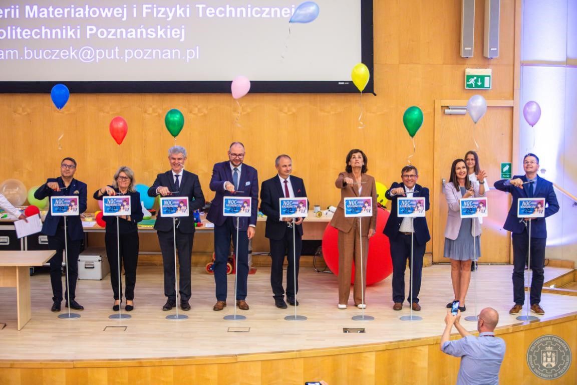 The ceremonial inauguration of the Researchers' Night took place on September 29, 2023 in the Auditorium of the Lecture Center of the Poznan University of Technology. There was a ceremonial cutting of balloons by the invited representatives of the University participating in the event. After Inauguration was perform even „PHYSICS BALLOON SHOW".