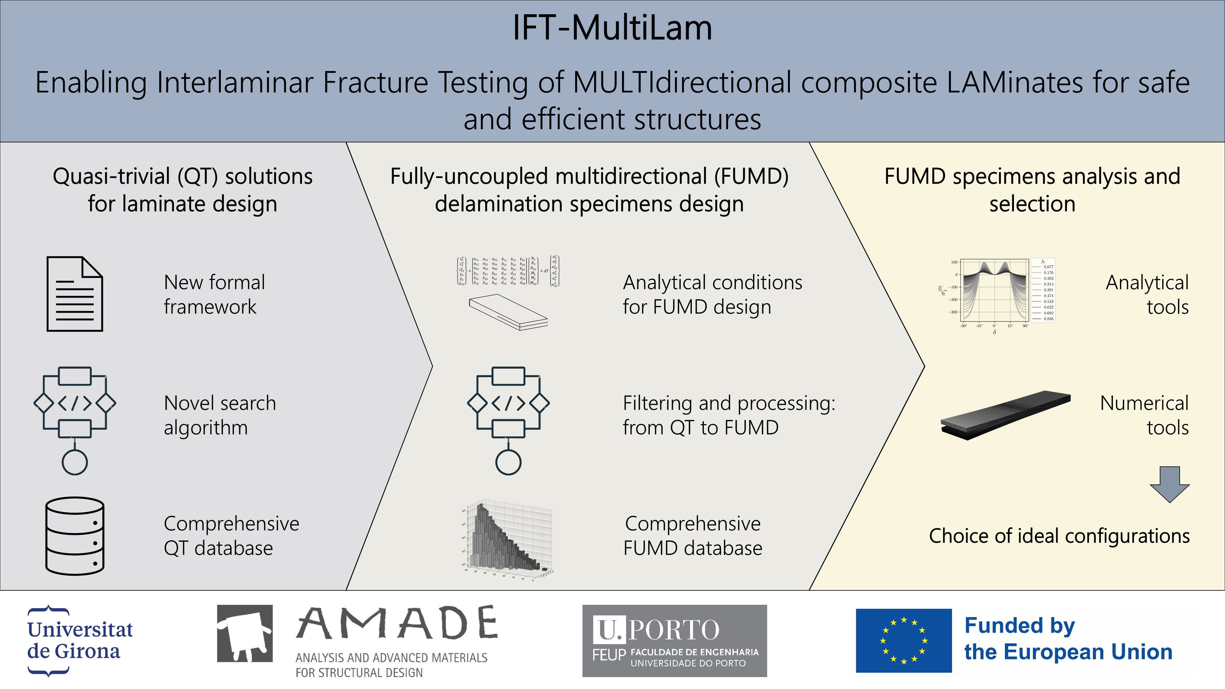 The IFT-MultiLam Project (Enabling Interlaminar Fracture Testing of MULTIdirectional composite LAMinates for safe and efficient structures) aims to develop the knowledge and the tools needed for an accurate evaluation of IFT in MD laminates. To do so, a recently developed set of MD specimens, called Fully-Uncoupled Multidirectional (FUMD), is exploited. While these specimens have already been proven to be extremely promising, further steps toward widespread adoption are still needed. These steps constitute the objectives of the IFT-MultiLam project, and are: