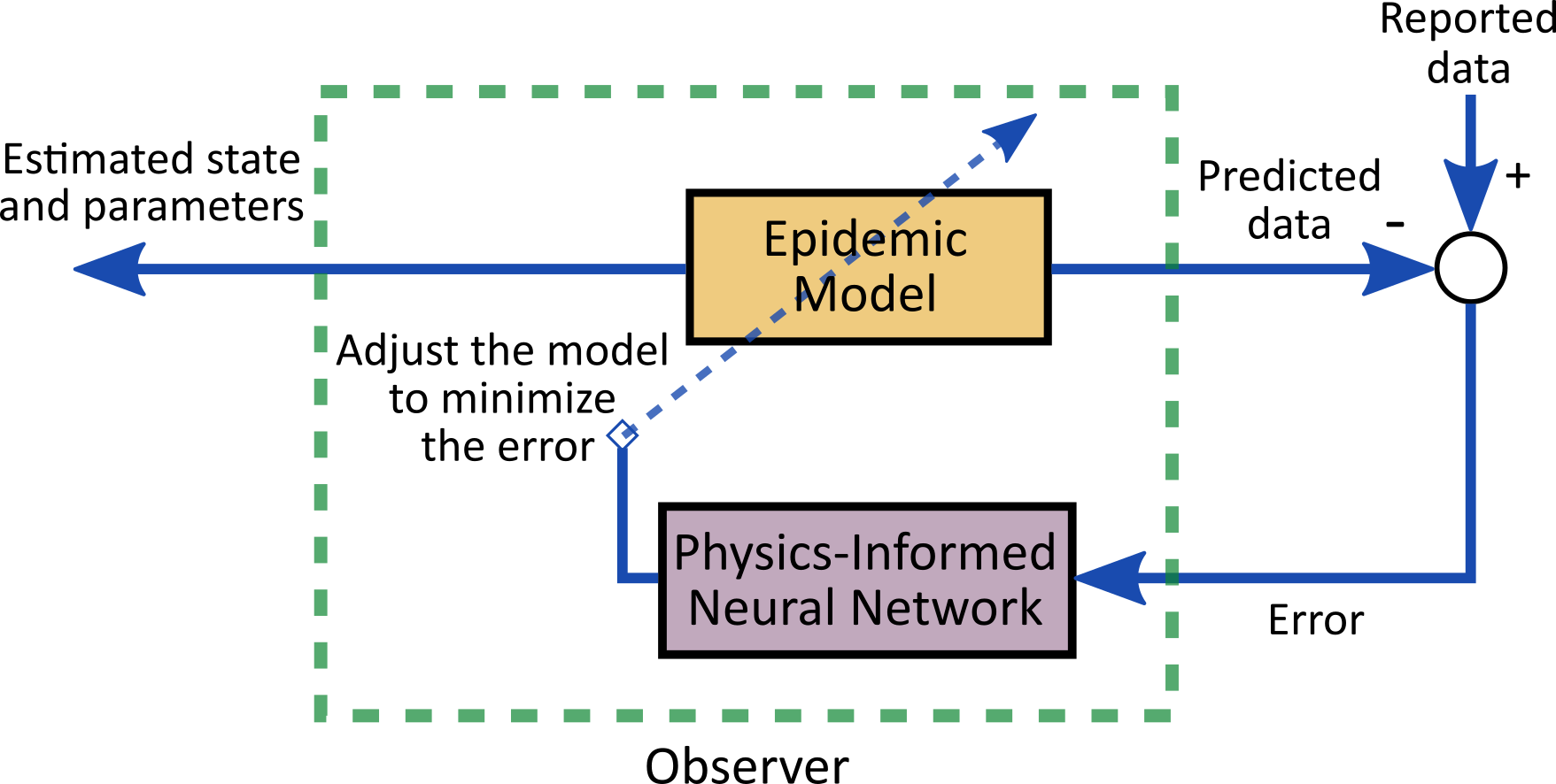 At the heart of our project lies a novel approach that combines the power of PINNs with rigorous system-theoretic analysis for epidemic monitoring and control. This integration enables more accurate and reliable modeling of epidemic spread, a crucial factor in effective decision-making during public health crises. Our project's cornerstone is the development of a self-correcting system utilizing a closed-loop structure of nonlinear observers. This innovative design allows for continuous refinement of the model, adapting to the ever-changing circumstances inherent in epidemic processes.