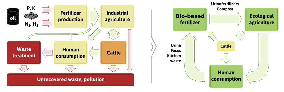 Source separation of organic matter and its recovery are likely to be critical for the long-term sustainability of the agri-food and waste-management systems in an increasingly urban world. Indeed, the transformation of kitchen or green waste and human excreta can provide invaluable resources such as compost, fertilizers, or energy and eventually remove the need for synthetic fertilizers entirely.