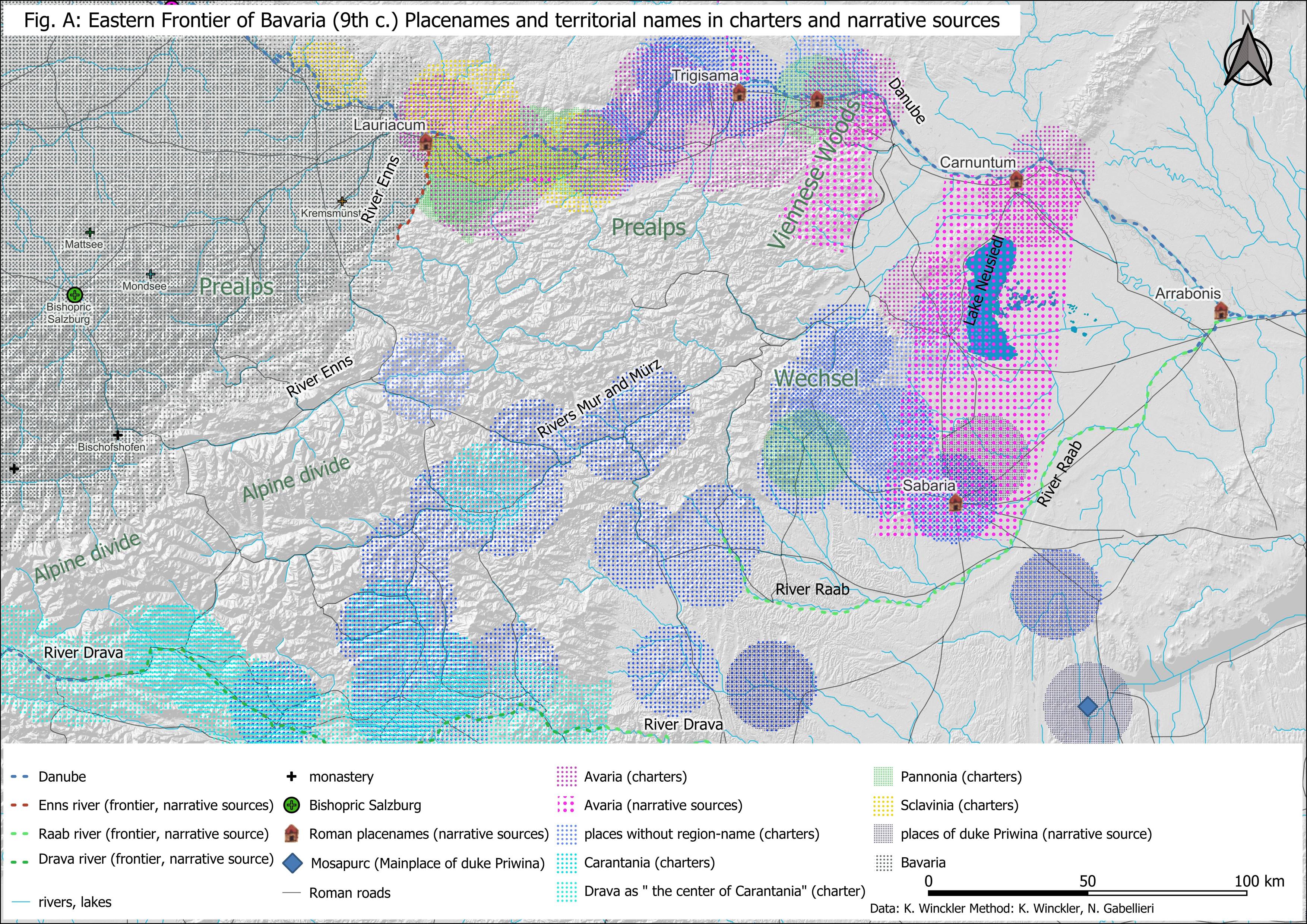 Traditional ways of historical maps to visualise those entities are not able to grasp medieval ideas on borders and territory - ZOF developed methods to depict those more accurately according to medieval discourse. ZOF broadened the scope of existing historical maps of the Carolingian Empire by researching and supplementing information from mediaeval source texts, such as spatial narratives or ideas and descriptions that have previously been dismissed as improbable. It critically analysed sources through methods of discourse theory, critical cartography and digital humanities, especially geographic information systems, to create more inclusive maps of the Carolingian Empire. The resulting maps provides a comprehensive historical view of Carolingian territories. Some maps will be published in project-publications (to be expected within 2025), others are available at specific database entries at www.zonafranca.info/database.