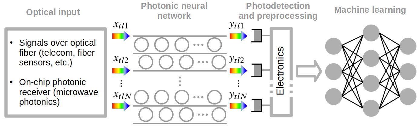 For example, processing optical data (like the internet data carried by light in fiber optics) with a photonic neural network keeps the processing in the optical domain. This avoids the energy consumption, latency, and information loss that happen when data is converted and digitized. Relevant examples of optical data include telecom signals through optical fibers and signals from numerous optical sensing applications, such as for biomedical or environmental monitoring. However, while photonic circuits are generally great for efficient linear operations and data transfer, they face challenges in performing the nonlinear operations and long-term memory tasks crucial for many neural network and ML implementations.