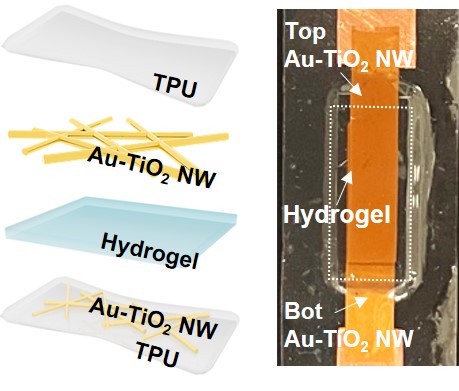 3) A fully Stretchable ITESC Consisting of Hydrogel and Au-coated TiO2 Nanowires (Au-TiO2 NWs)
