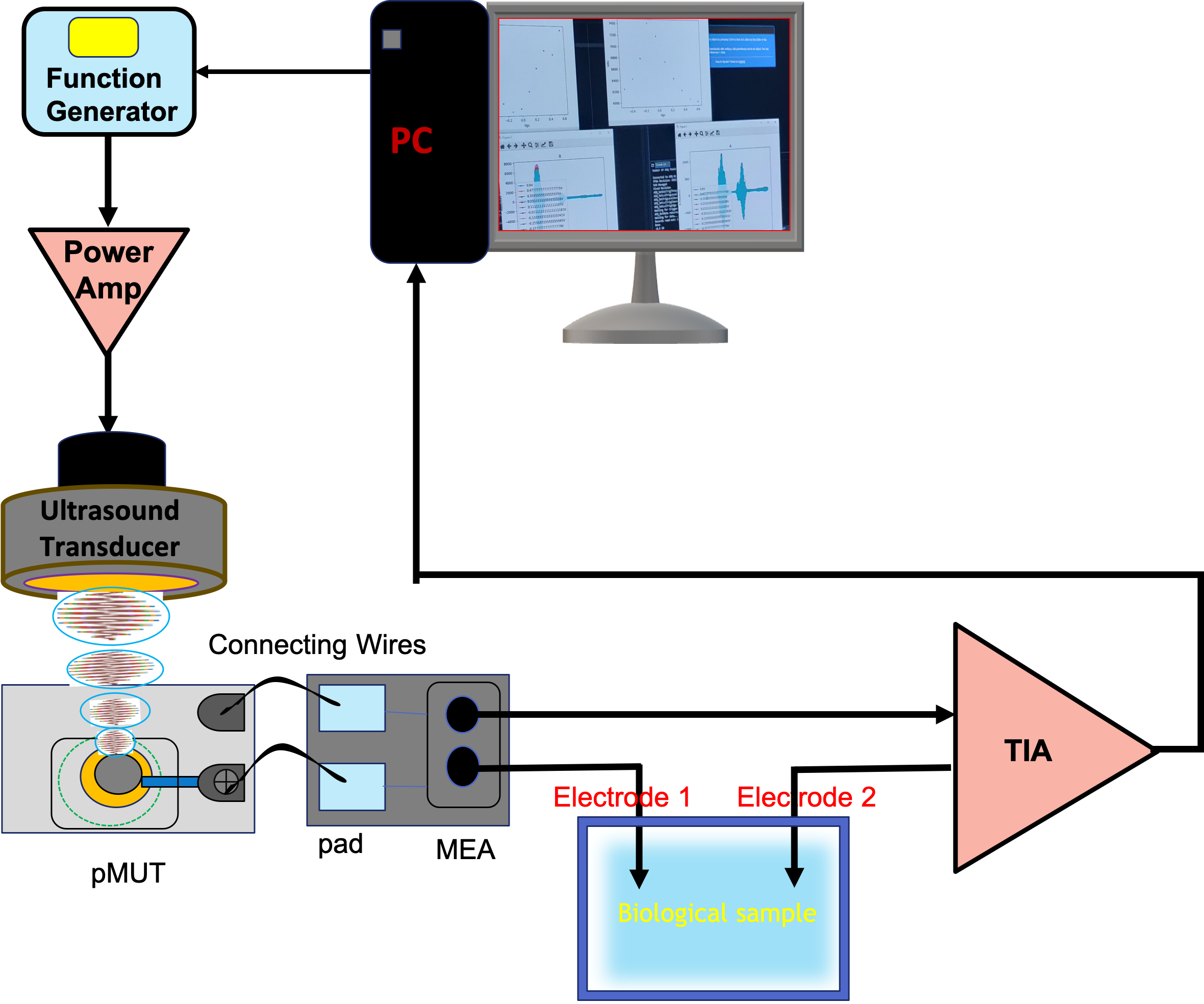 Three types of microelectrode arrays were connected to the p-MUT array to investigate their ability to conduct neural stimulation in PBS:
