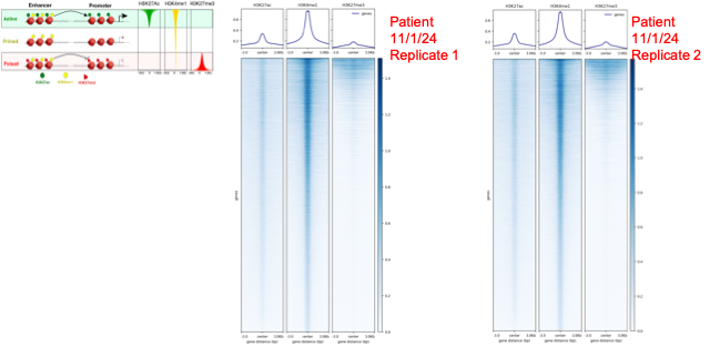 2. We have generated high-quality data from these patient samples, and are in the process of integrating the results from our CUT&Tag and BH3 profiles in these patients to identify key epigenetic profiles alongside key genotype data for these samples.