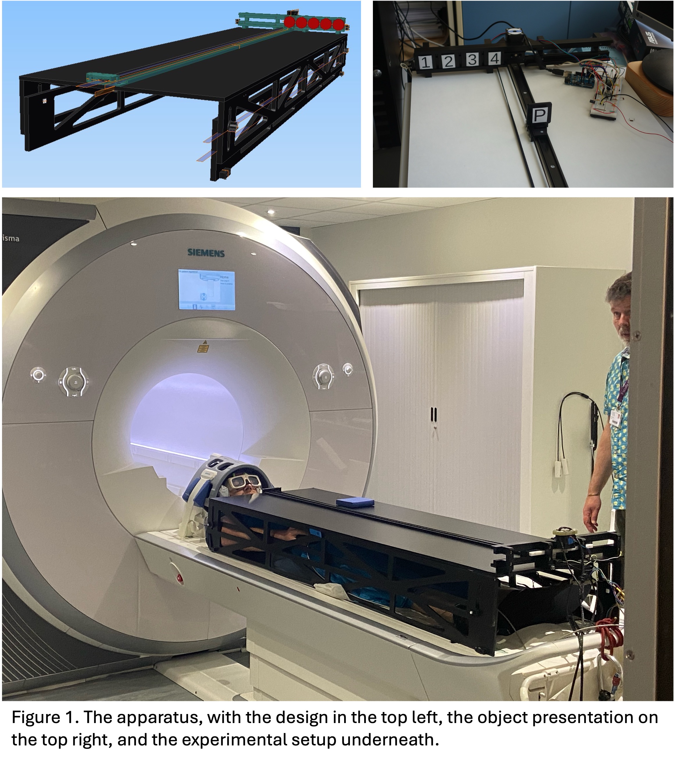 The second overarching line of studies looked at the neural correlates of object location memory. A mock study was conducted to confirm that the effects previously found in behavioural tasks with participants sitting at a table would replicate in an MRI-setup, in which participants would be lying down. An additional mock-scanner study was run to test the reliability of the designed apparatus, which reached an error-rate of 1 in 700 trials. After these two mock-studies confirmed proof of concept, we ran two fMRI studies, investigating the neural correlates of spatial memory, including topographic mapping of the SPOC area and neural correlates involved in perceiving objects at varying three-dimensional distances, as well as those associated with object location memory across these distances. Participants were lying in the MRI-scanner, with their heads propped up to approximately 40. This allowed them direct vision of objects presented on the apparatus. Data collection of two studies (both N = 30) has been completed and data analysis for these studies has commenced. While the anticipated behavioural effect of object knowledge on OLM did not emerge as expected, the collected neuroimaging data is currently being analysed and is still expected to provide valuable insights on the neural correlates for spatial memory and a building block for future research.