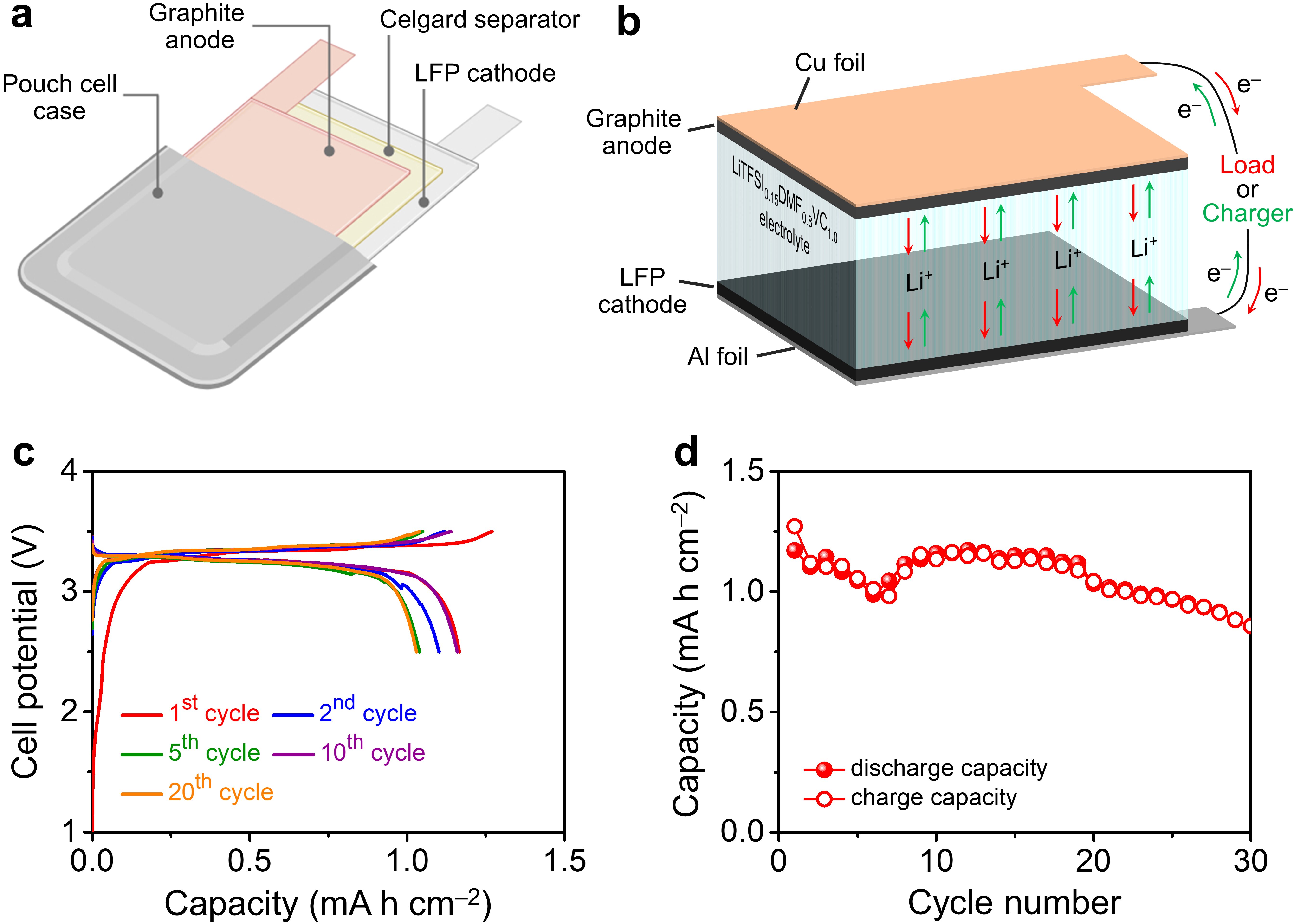 (v) A single-layer pouch cell demonstrated successful operation, delivering 0.87 mAh/cm2 capacity after 30 cycles.
