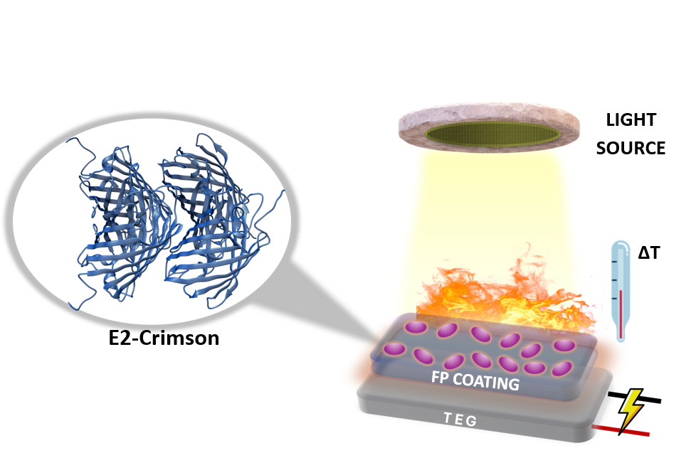 The functionalization of fluorescent proteins enabled the development of dual-functional FP coatings for thermoelectric generators (FP-TEG). These coatings exhibited good photothermal efficiencies between 21% and 48% under white LED illumination, outperforming previous biogenic materials in photon-to-heat energy harvesting. The project demonstrated the feasibility of using protein-based materials for low-power autonomous energy conversion, highlighting their potential for thermoelectric and sensor applications.