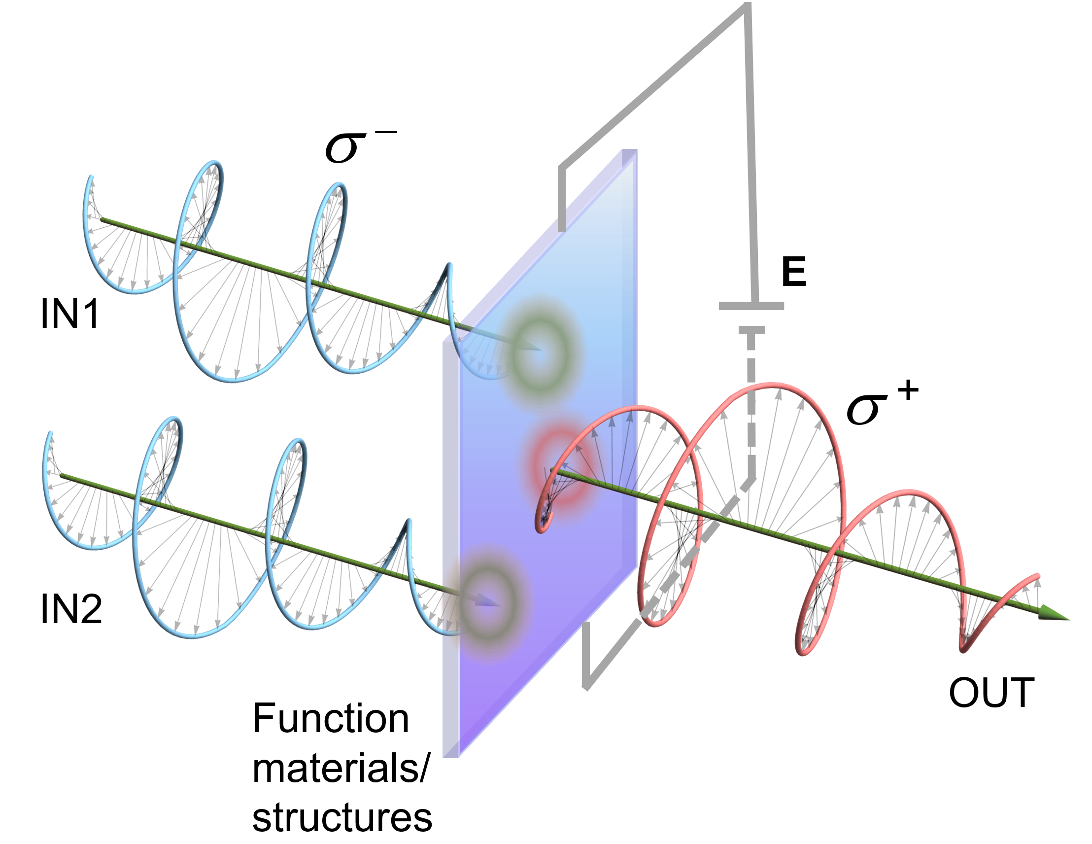 Currently, the optical processing based on optical fibre networks mostly supports the capability of ∼hundreds of Tbits/s. However, the signal conversions of optical-to-electrical and then electrical-to-optical in the fibre communication are limited by the conversion operation bandwidth and communication rates. Further, with the ever-growing demand for carrying and processing data in a fast and efficient way, all-optical computing and processing become a promising candidate for the next generation computing and processing applications, due to many advantages (such as high-speed and parallel data processing), compared with their electronic counterparts. Optical computing and processing can avoid low-efficiency and low-speed opto-electronic signal conversion thanks to their fully reconfigurable ability and multi-function programmability. Indeed, all-optical logic gates are indispensable for optical computing and have been demonstrated to perform all-optical arithmetic binary calculations including addition and multiplication. Current all-optical logic gates mainly use linear and nonlinear optical effects. With the linear optical approaches, common logic gates (e.g. AND, OR, NAND, NOR, XOR, and XNOR) have been demonstrated in various optical structures such as nanowire networks, photonic crystals, plasmonic waveguides and metasurfaces, etc. As many different particles (e.g. electrons, molecules), photons process an intrinsic degree of freedom, chirality. Optical chirality, regarding left-handed and right-handed circularly polarized light, has attracted huge interest for fundamental research (e.g. to study the symmetry of single molecules or carbon nanotubes (my host group work) and applications (e.g. quantum technology, sensing and imaging). However, optical chirality-based computing and processing still remain largely elusive. In this project, we construct a universal ultrafast computing approach with the optical chirality and demonstrate their unique performance advantages, such as atomically thin footprint, multiple gates simultaneous operation in a single device, and broken bandwidth limitations, which is fundamentally different from the conventional optical gates. It suggests that optical chirality could provide a powerful degree of freedom for future optical computing and is promising for quantum computing. After published, this work was picked up by more than 20 news outlets such as ‘EurekAlert’ entitled ’New optical computing approach offers ultrafast processing’; ‘NewScientist’ entitled ‘Light-based computer could outpace traditional electrical chip designs’; ’SciTechDaily’ entitled ‘One Million Times Faster Than Current Technology: New Optical Computing Approach Offers Ultrafast Processing; ‘PhysicsWorld’ entitled ‘Chiral logic gates make ultrafast processors’, which points out that our devices that work using circularly polarized light are a million times faster than current technologies; etc. The journal ‘IEEE Spectrum’ in the reports ‘These Optical Gates Offer Electronic Access Ultrafast optical computing interfaces with traditional circuits’ highlighted that our work reveals a new and promising interface between optical computing and conventional electronic computing. The ‘Semiconductor Engineering’ recommended our work and select it into “Semiconductor Engineering’s library 10 new technical papers of October of 2022. Later on, invited by the editor Professor Lesley Cohen, we wrote a perspective paper entitled ‘Prospect of optical chirality logic computing’ for the journal Applied Physics Letters.