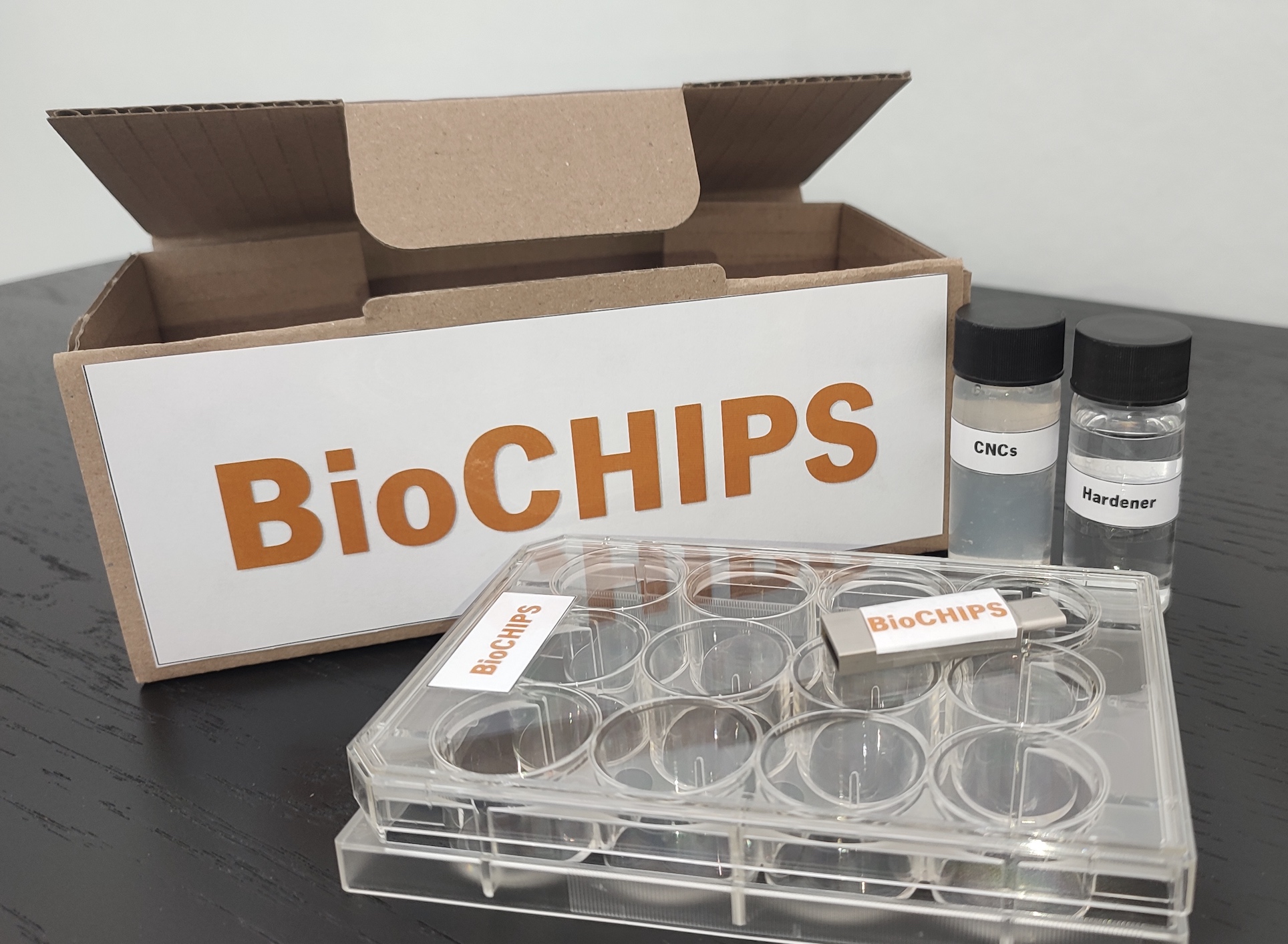 BioCHIPS proposes an innovative bottom-up strategy to directly fabricate cell-laden devices that recreate the unique biophysical cues from the native fibrillar ECMs and allow the design of bioengineered microtissues with arbitrary geometries for anatomical and physiological function. The proposed platform combines the concepts of matrix-assisted 3D free-form bioprinting with the controlled self-assembly of colloidal cellulose nanocrystals (CNCs) to fabricate cell-laden constructs embedded within its own fibrillar CNC hydrogel device. Our platform can array multiple independent single organ models in a high-throughput manner (number will depend on the desired model complexity and well plate used) or link multiple tissue/organ models together with microfluidic circuits that can be user-defined on their CAD designs.
