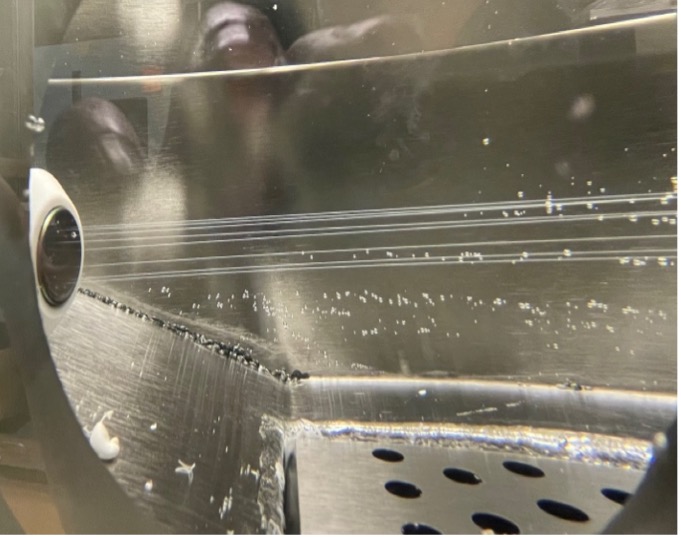 Multifilament spinning: A photo taken through the observation window as multifilament artificial spider silk is being spun using a slightly acidic aqueous solution at ambient temperatures, without the need for toxic or harsh chemicals.